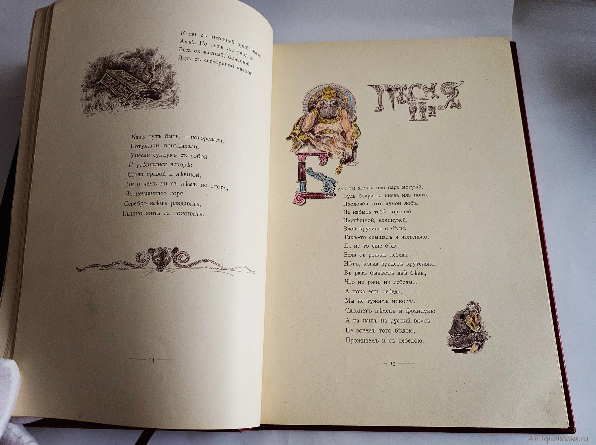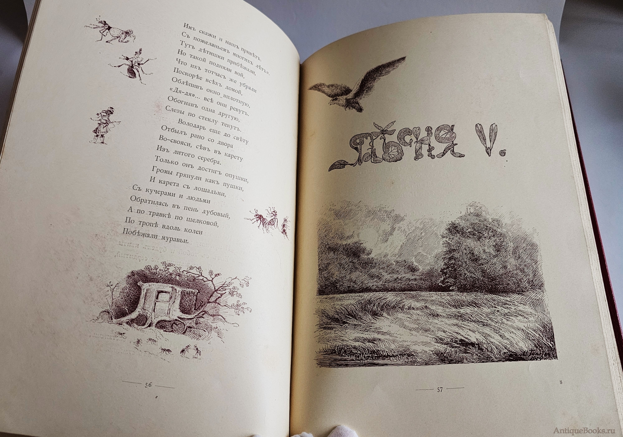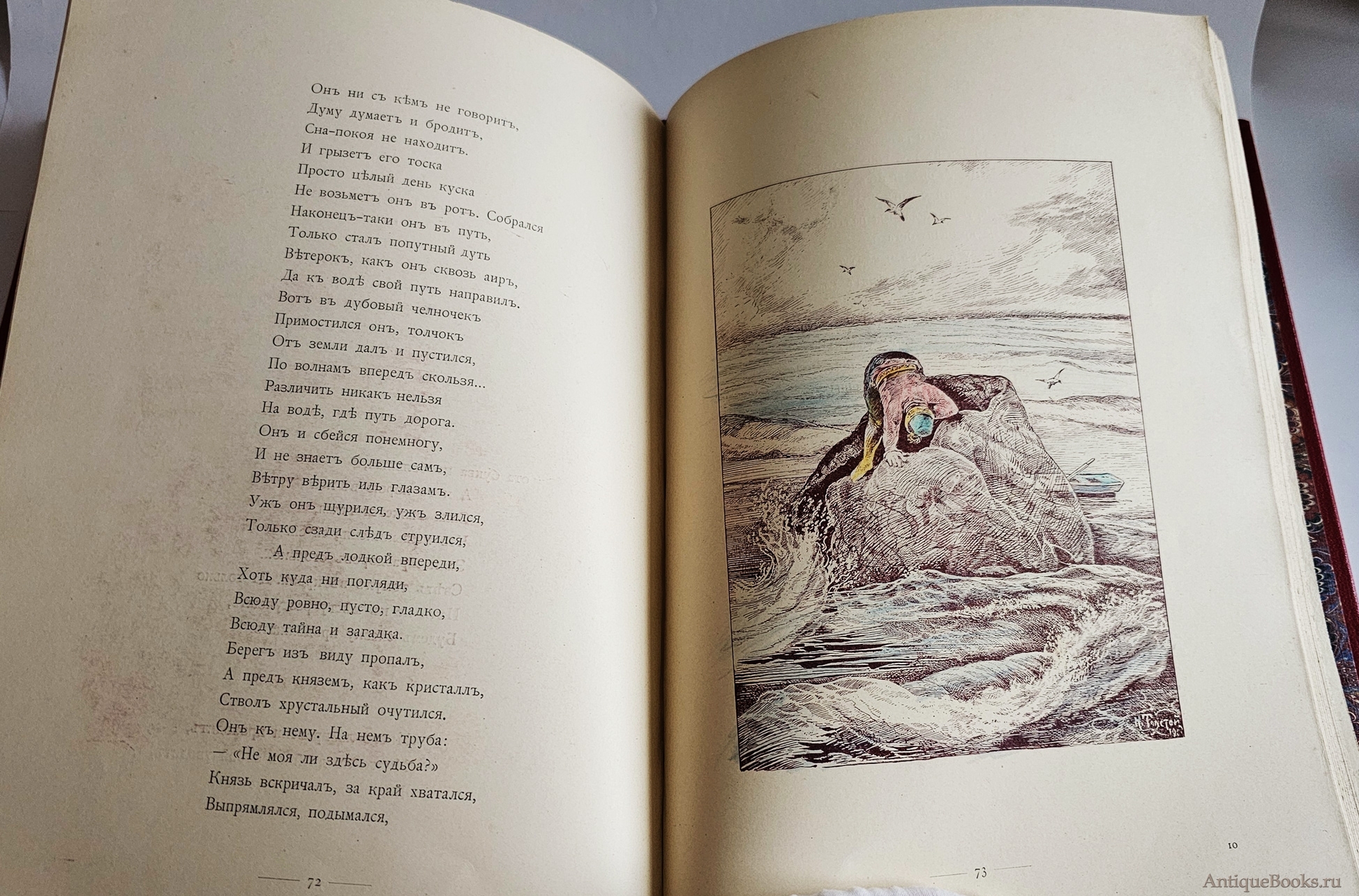 Н. ТолстойКнига в цельнокожаном современном переплете с роскошным золотым тиснением. Форзацы - "павлинье перо". Большой формат: 31x22 см. Бумага качественная плотная. Книга богато проиллюстрирована. Рисунки и заставки самого автора. [8], 116 стр. Под переплетом сохранена издательская иллюстрированная обложка.Цена: 70 000 руб.