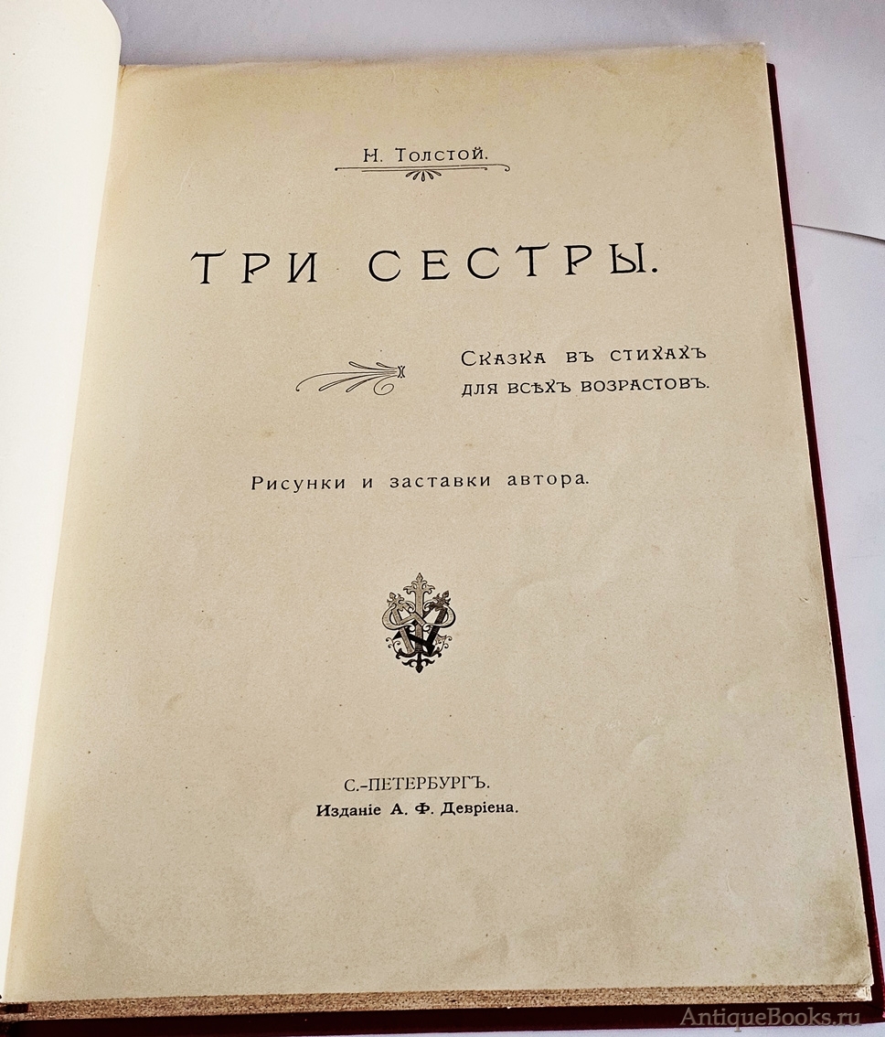 Фотографии предлагаемого издания "Три сестры. Сказка в стихах для всех возрастов". Н. Толстой. СПб.: Изд. А.Ф. Девриена, [1904г.]