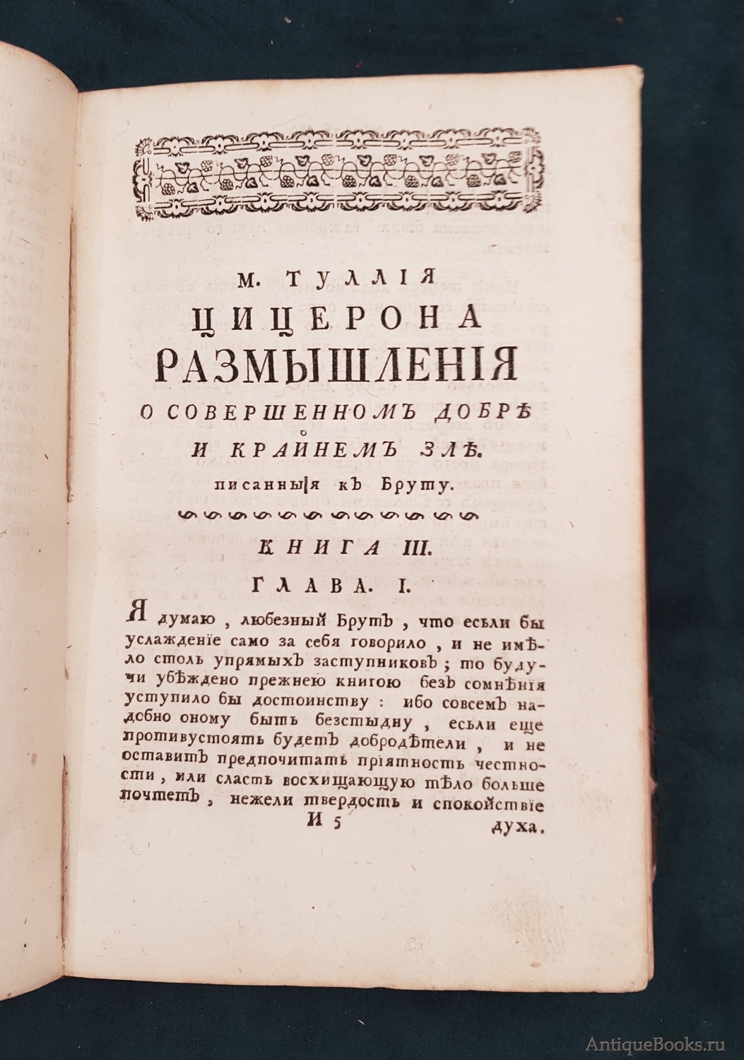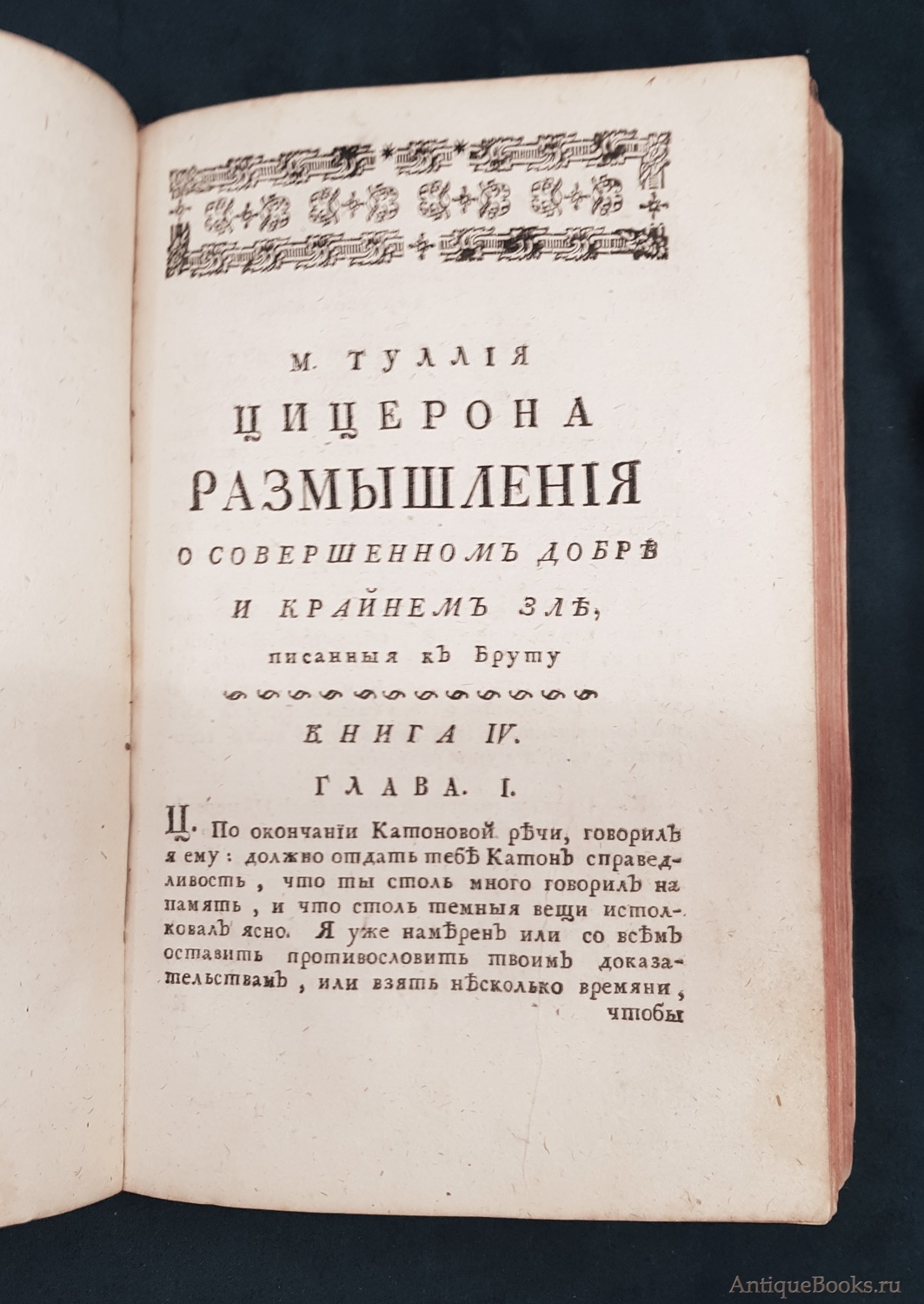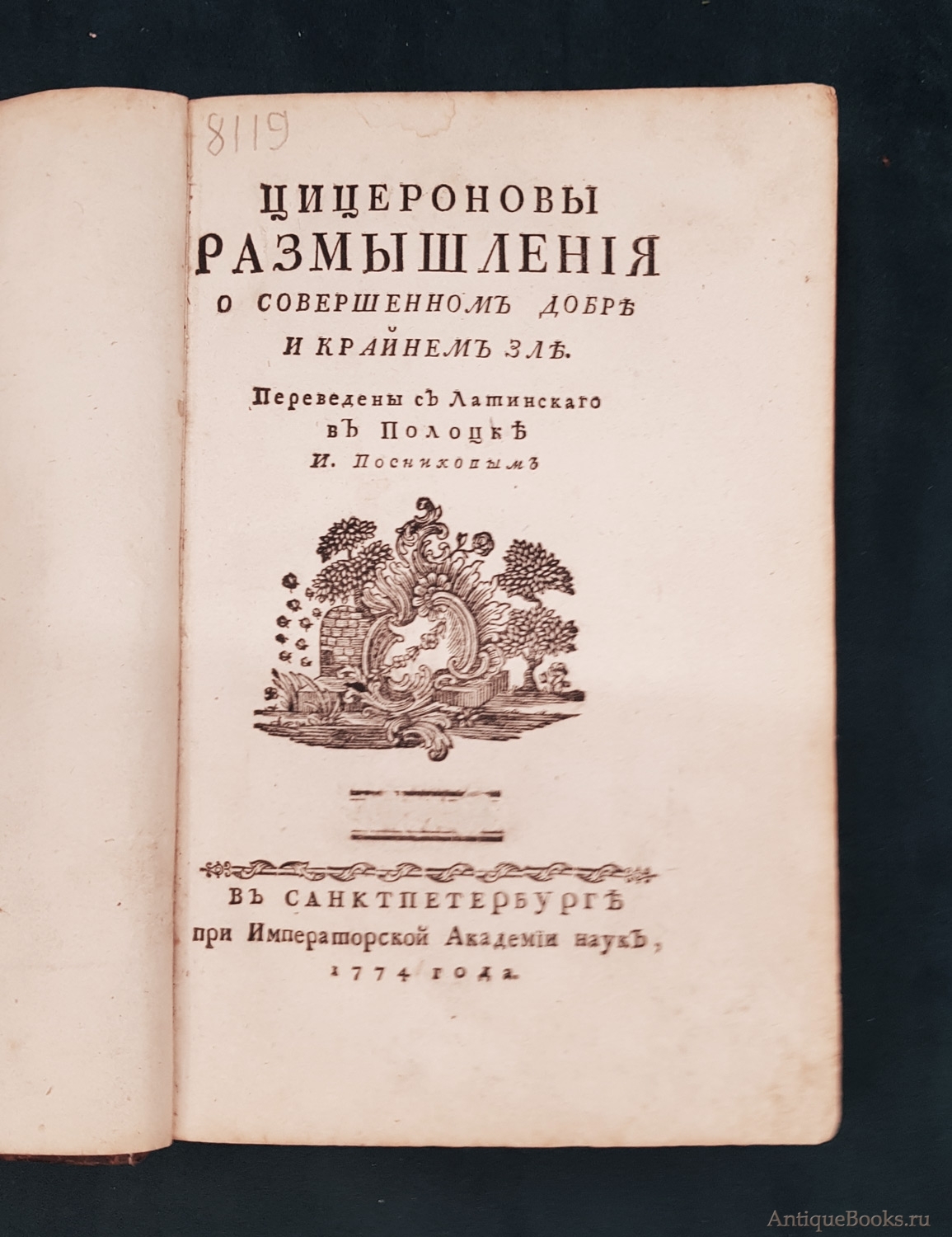 "Цицероновы Размышления о совершенном добре и крайнем зле" Марк Туллий Цицерон Санктпетербург, При Императорской Академии наук, 1774 г.