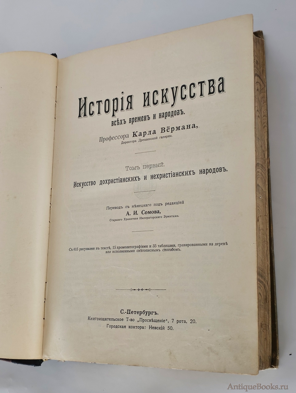 В "Истории искусств всех времен и народов" К. Вёрмана строго научная точность соединена с общедоступностью изложения. Сочинение К. Вёрмана - прекрасное руководство для людей, желающих пополнить свои познания сведениями по истории искусства; однако и для того, кто захотел бы специально изучить этот предмет, оно может служить пособием, благодаря не только своему содержанию, но и сопровождающему ему указателю сочинений, относящихся к разным частям истории искусства. Ценность данного издания работы К. Вёрмана увеличивается огромным количеством помещенных в него иллюстраций, имеющих тесную связь с текстом. Цена: 80 000 руб.