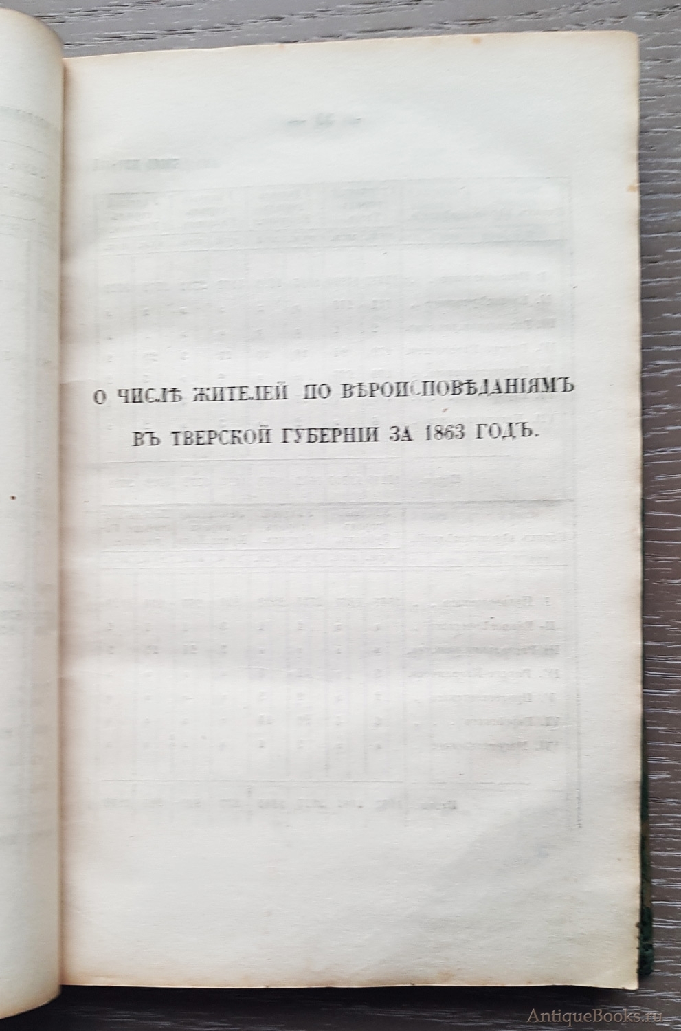 Издание Тверского Статистического комитета. [2], 47, [3], 106, [4], 185, [2], 77, II cтр, 2 л. ил., 3 л. табл. Состояние очень книги хорошее. Формат 21×14 см. В издательском переплете. На первый и некоторых других страницах расписаны орешковыми чернилами и карандашом памятные даты, фамилии чиновников и служащих Тверской губернии.