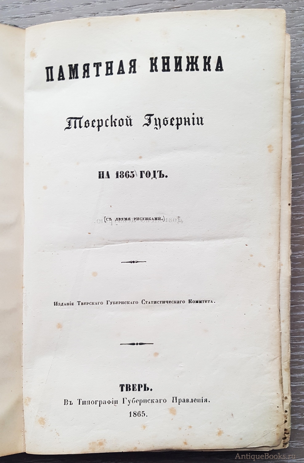 "Памятная книжка Тверской губернии на 1865 год. (С двумя рисунками)" Тверь, Типография Губернского правления, 1865 г.