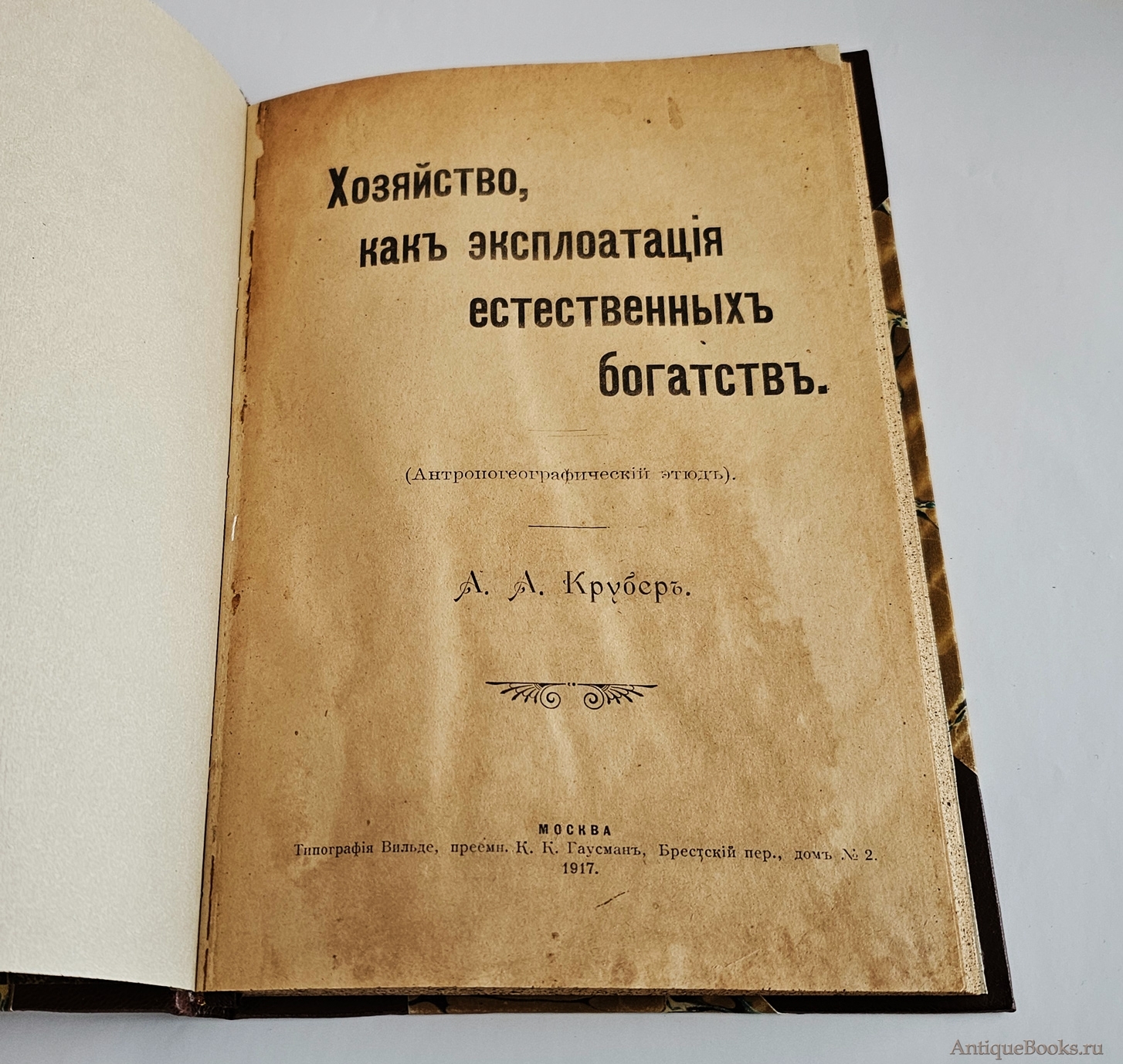 "Хозяйство, как эксплуатация естественных богатств: (Антропогеографический этюд)" книга А.А. Крубера Москва, 1917 г.