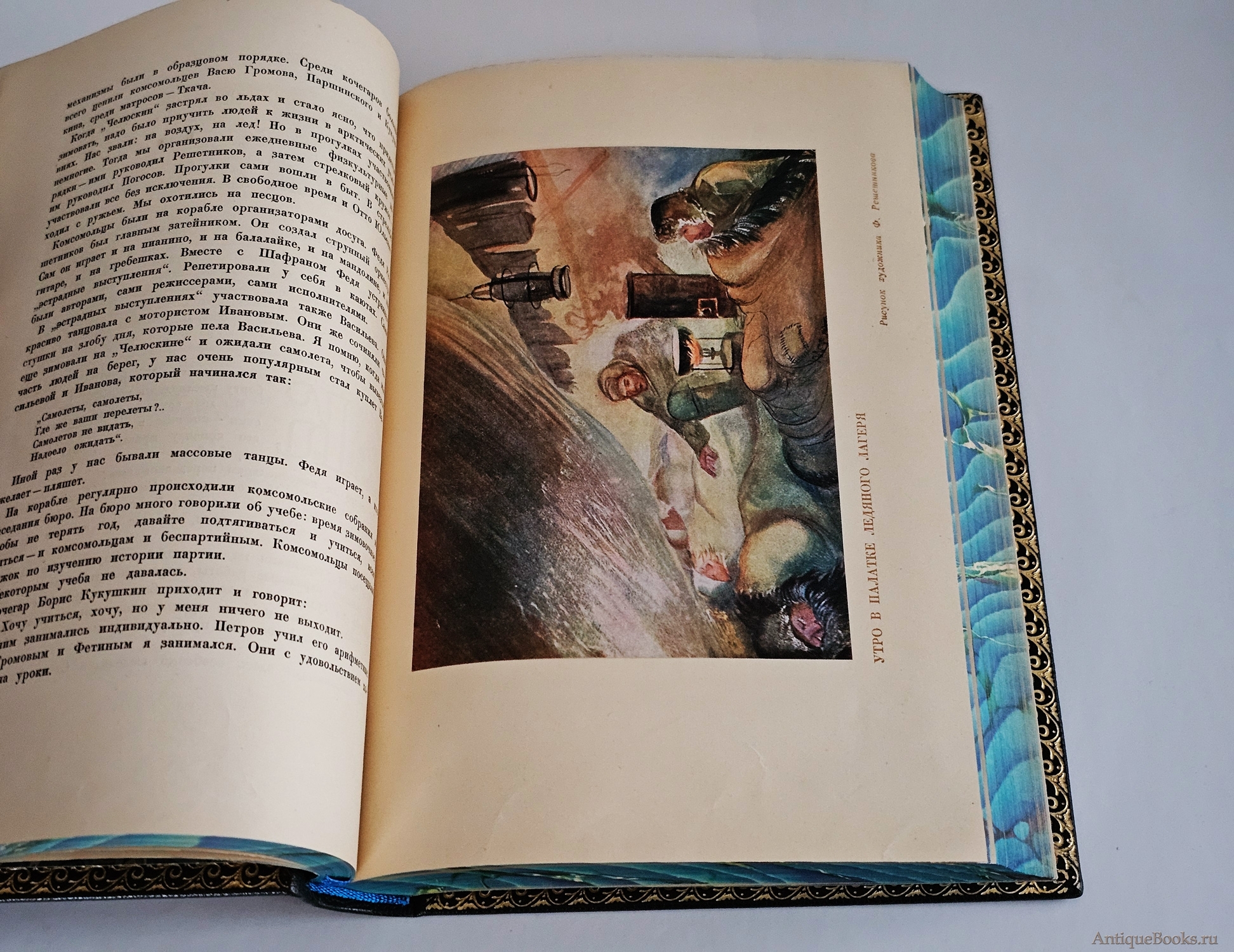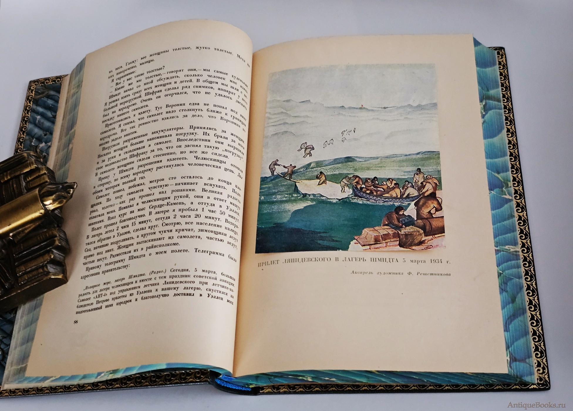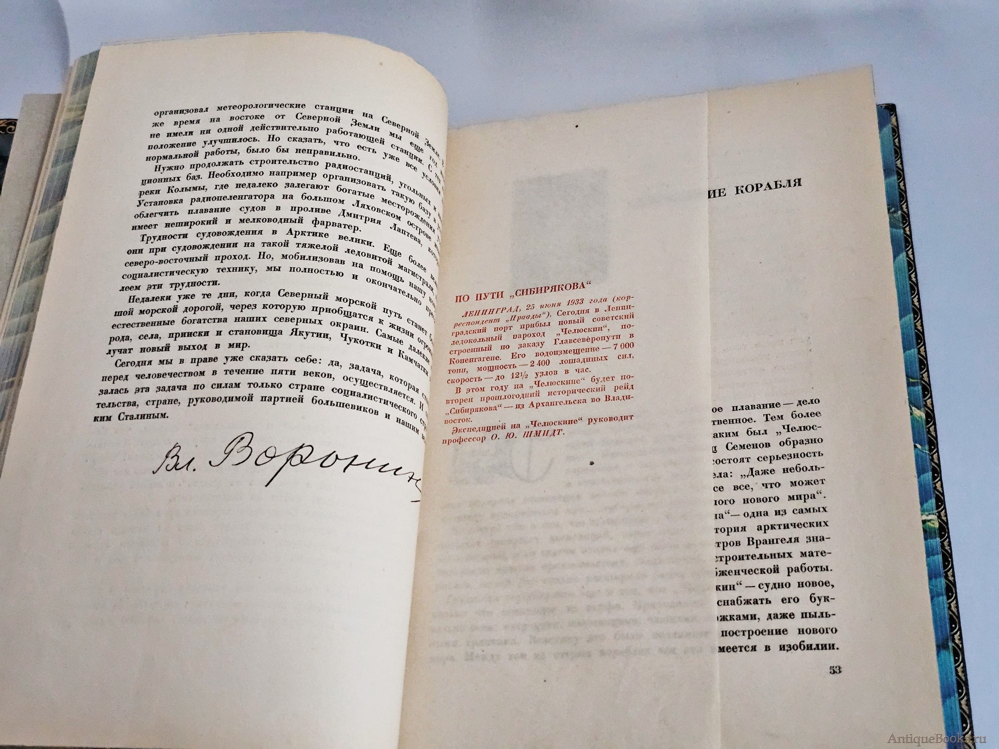 Издание отражает не только события экспедиции, но и дух эпохи, демонстрируя организованность и мужество советских людей в экстремальных условиях. Книга остаётся важным источником для изучения истории освоения Арктики и подвига челюскинцев. Цена: 80 000 руб.