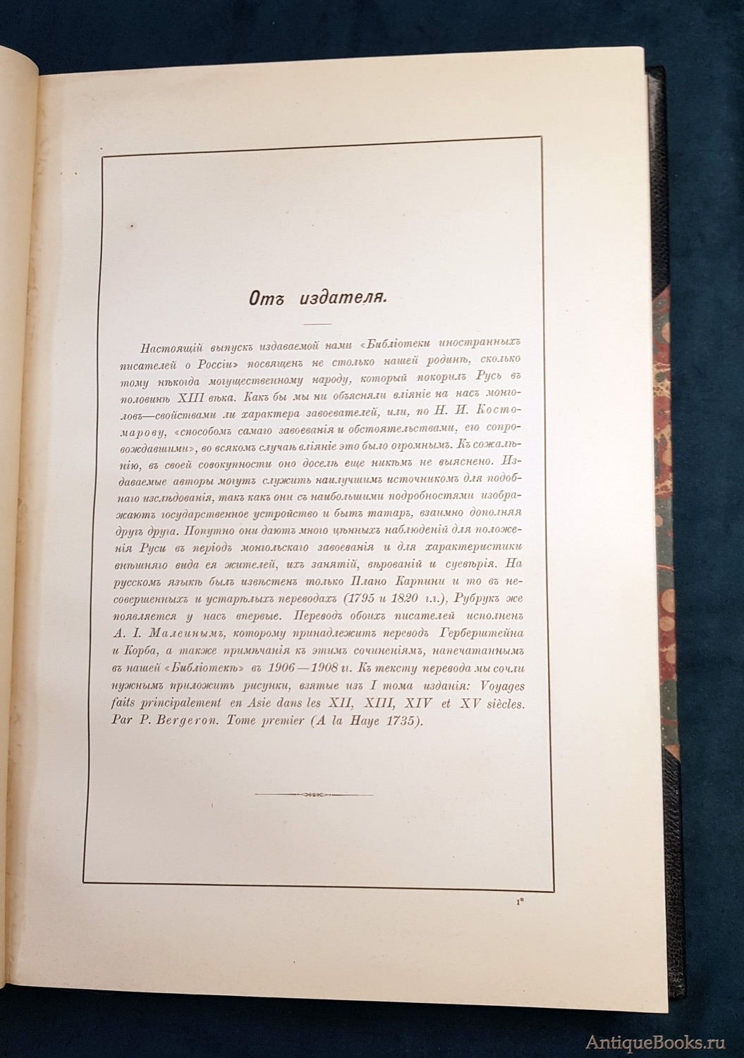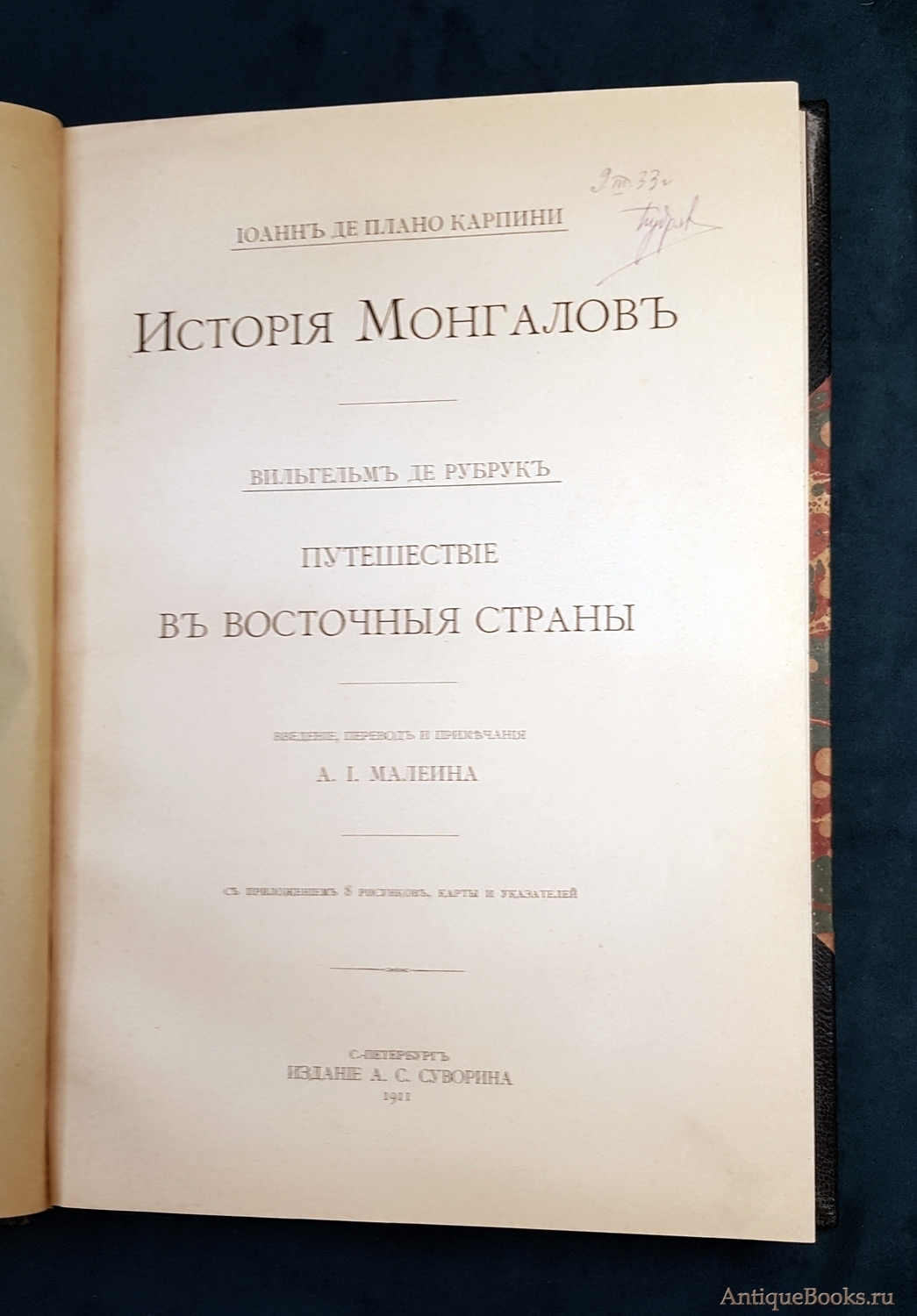 "«История Монгалов» Карпини и «Путешествие в Восточные страны» де Рубрука" Дж.Карпини, В.Рубрук Санкт-Петербург, Издание А.С. Суворина, 1911 г.