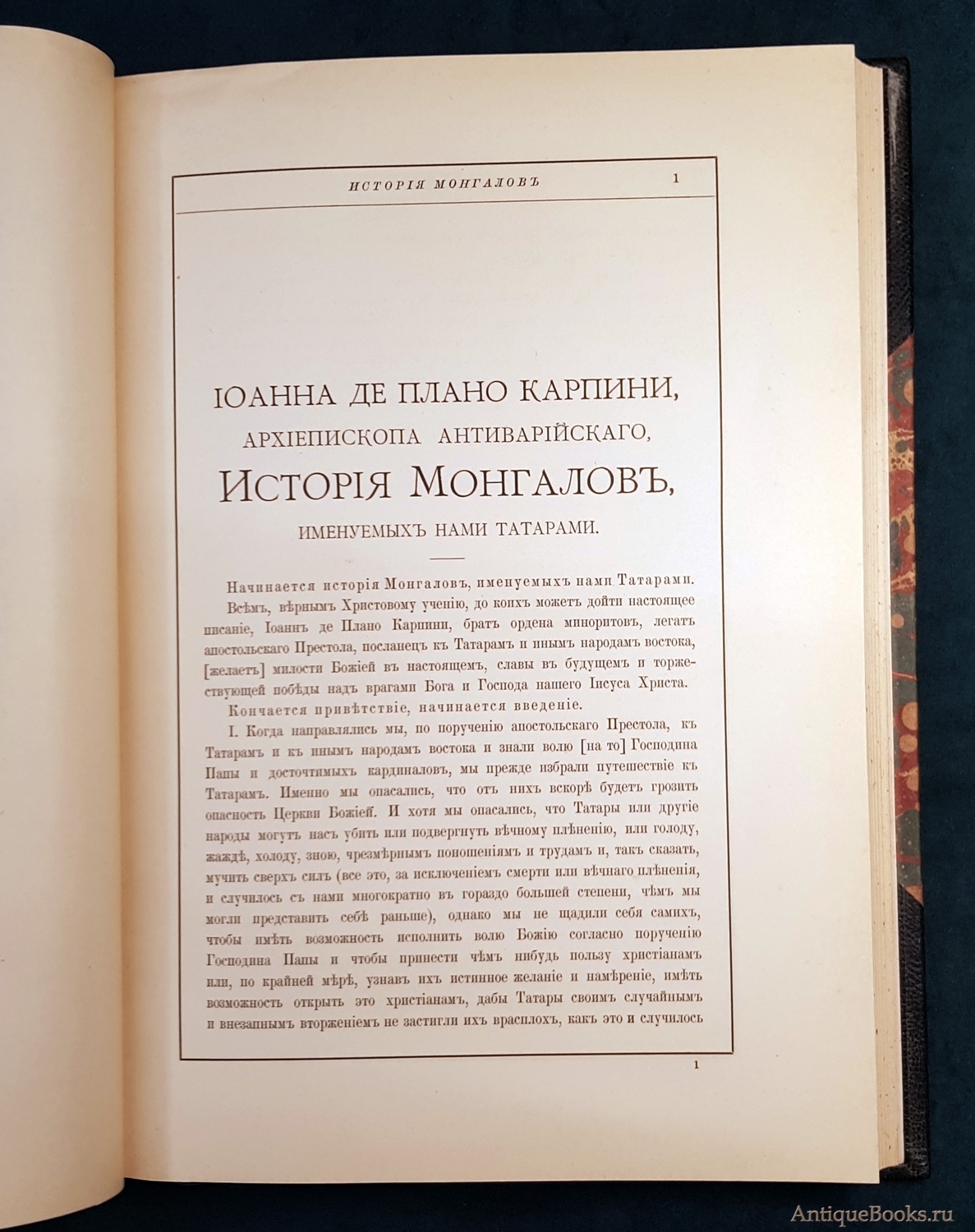 В издание вошли сразу два сочинения, подготовленные по итогам поездки дипломатической миссии папского престола и короля Людовика IX в лице монахов францисканского ордена ко двору великого хана.