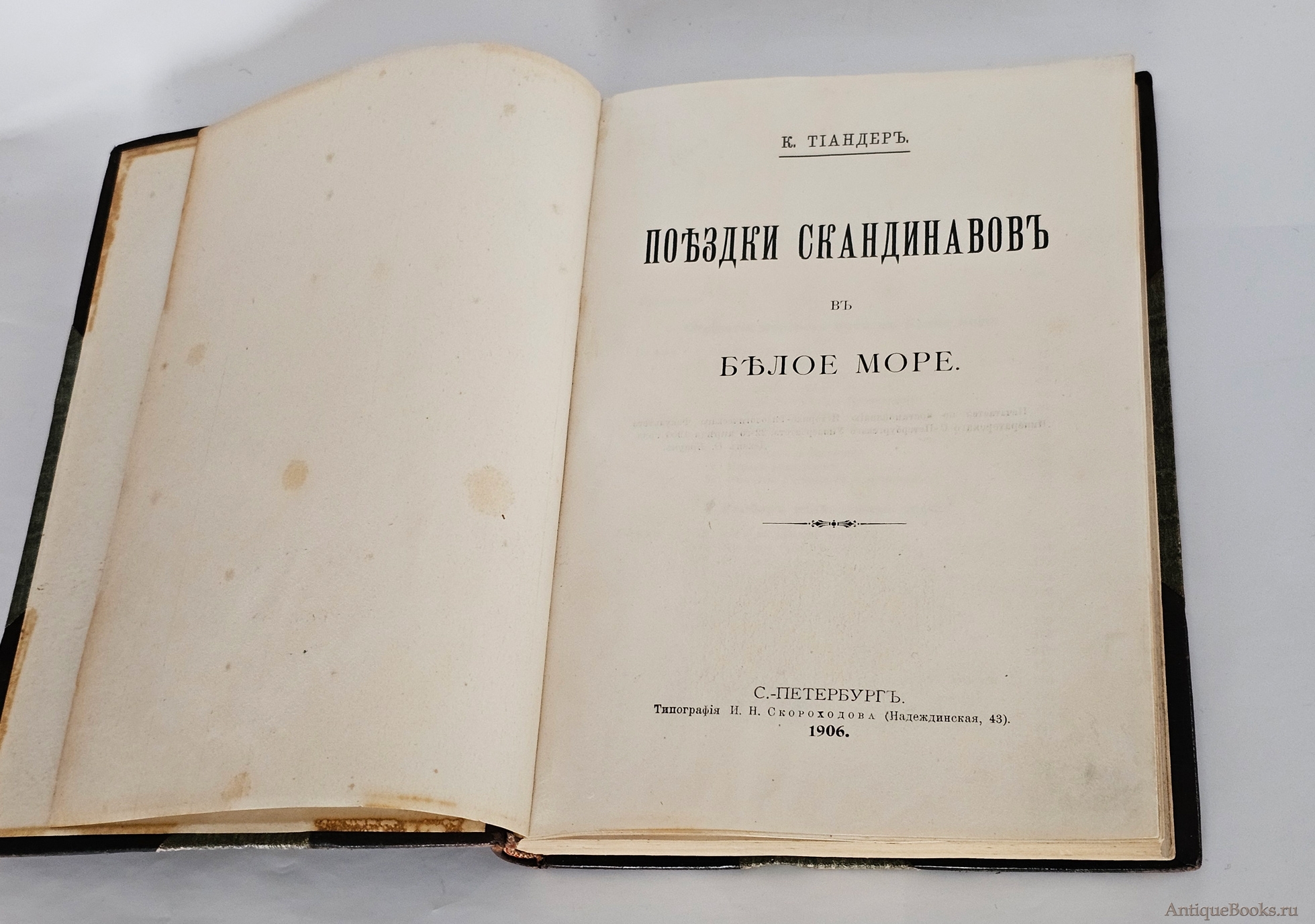 Книга Карла Фёдоровича Тиандера «Поездки скандинавов в Белое море» вышла в Санкт‑Петербурге в 1906 году в типографии И. Н. Скороходова.