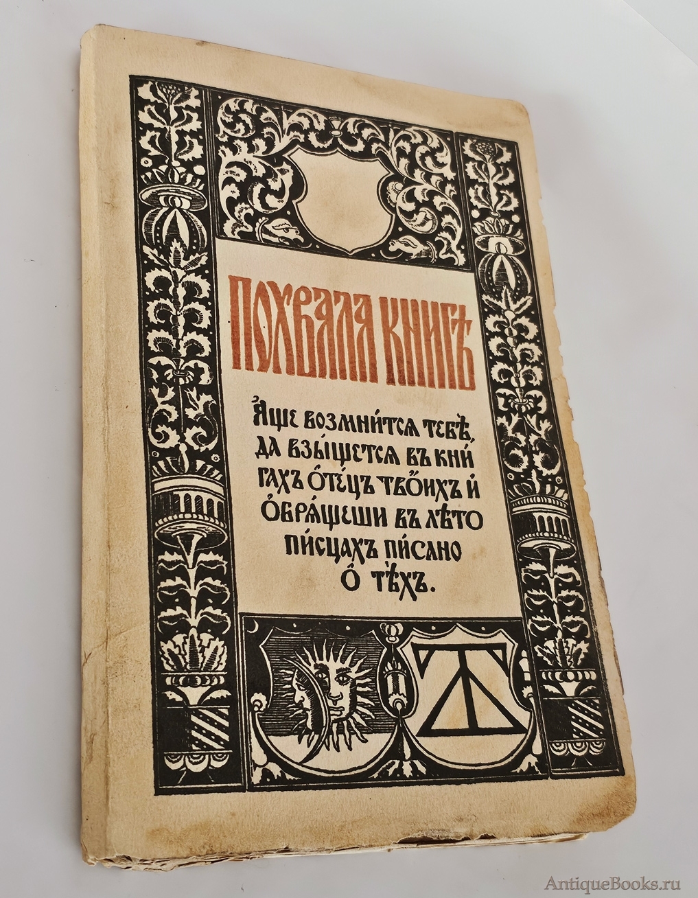 «Похвала книге» считается заметным памятником дореволюционного русского библиофильства — как по содержанию, так и по полиграфическому исполнению. Цена: 45 000 руб.