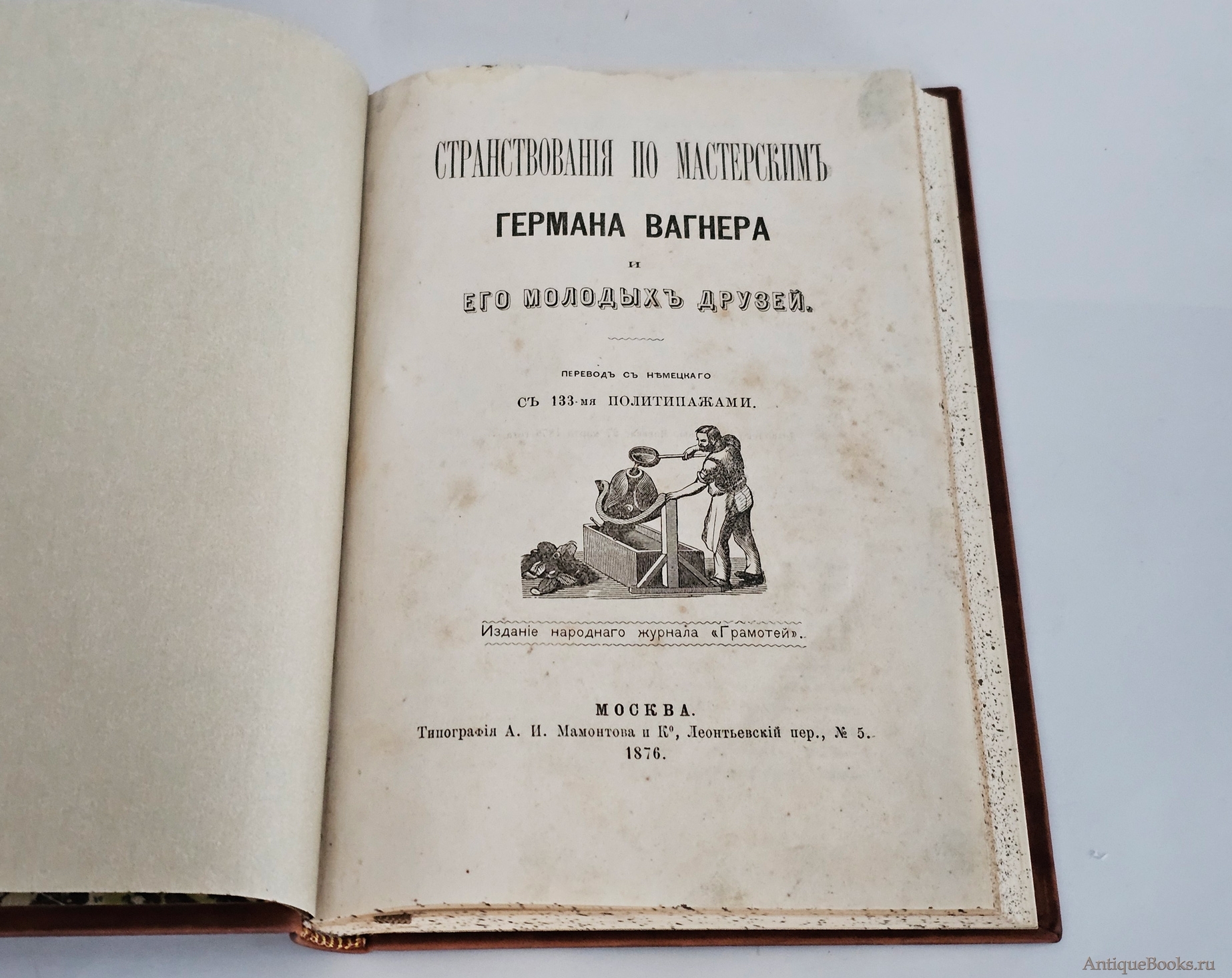 Книга «Странствования по мастерским Германа Вагнера и его молодых друзей» (1876) — это познавательное издание, знакомящее читателя с различными ремёслами и производствами. Издание подготовлено народным журналом «Грамотей»; отпечатано в типографии А. И. Мамонтова и К°.