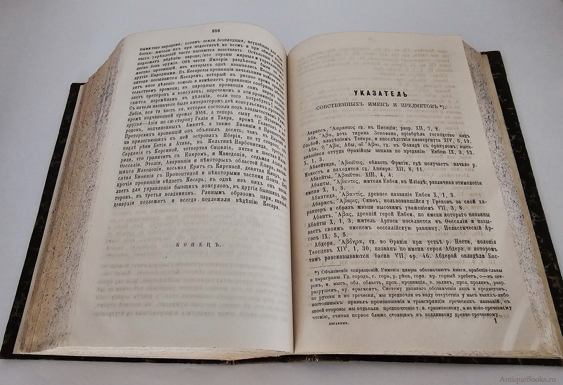 Издание «Географии» Страбона 1879 года в знаменитом первом полном русском переводе Ф.Г. Мищенко (до сих пор многими исследователями считающийся лучшим).