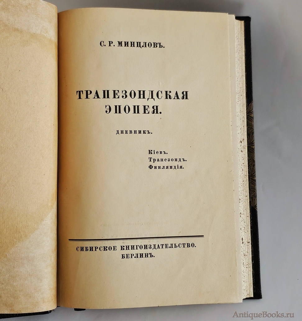 "Трапезондская эпопея. Дневник" С.Р. Минцлов Киев. Трапезонд. Финляндия. Берлин: Сибирское книгоиздательство, [1925]
