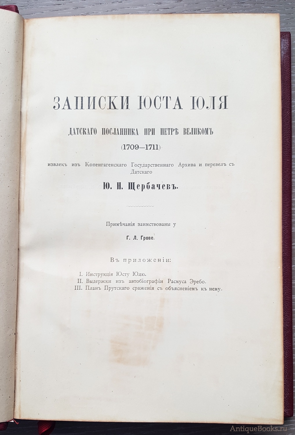 Его записки охватывают время с 8 апреля 1709 года по март 1712 и описывают события, в которых Юль участвовал или свидетелем которых был: свидание в Потсдаме трех королей (Прусского, Датского и Польского), первое свое знакомство с Петром в Нарве, торжественное вступление в Москву по случаю Полтавской победы, морской поход Петра под Выборг, бракосочетание герцога Фридриха Вильгельма Курляндского с царевною Анною Иоанновной, пиры с царем, переезды по России и Украине, встреча с Петром под Могилевом после несчастного Турецкого похода, последнее свое свидание с Екатериной в Торне и т. п. Цена: 75 000 руб.