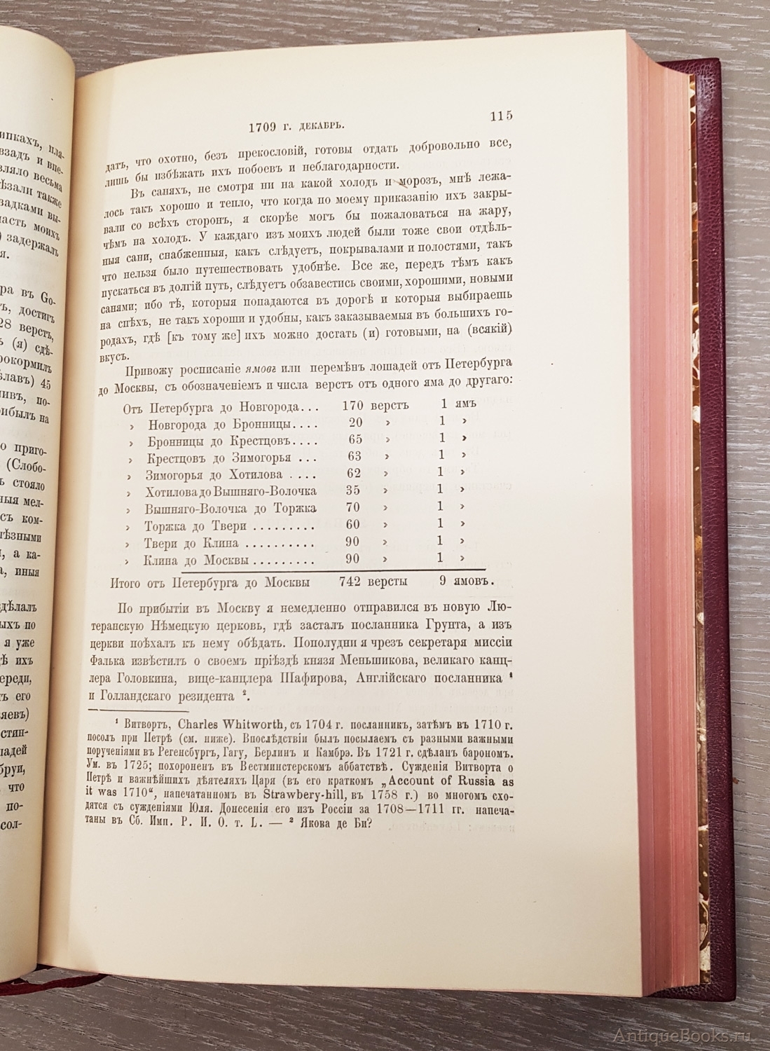 Извлек из Копенгагенского государственного архива, снабдил предисловием и перевел с датского Ю.Н. Щербачев, примечания заимствованы у Г.Л. Грове. Книга в красивом современном цельнокожаном переплете, украшенном виньетками, орнаментом и конгревным тиснением [2], X, 598, [2] стр, 1 л. план. Формат увеличенный: 27,4×19х3 см. Редкое малотиражное издание.