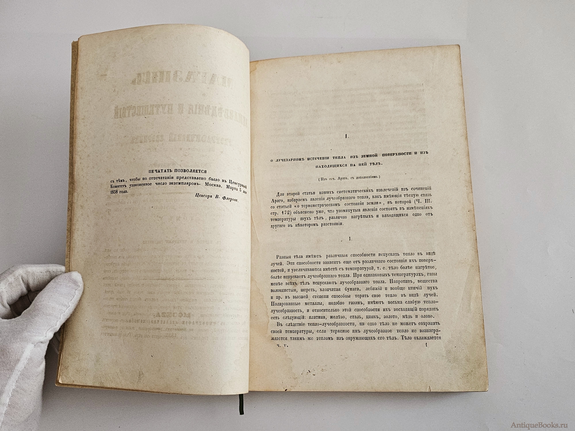 Основу тома составляет работа «О лучезарном истечении тепла из земной поверхности» — изложение сочинения Араго с дополнениями Д. Перевощикова. В этой части подробно разбираются процессы излучения тепла от земной поверхности, их роль в формировании климата, влияние на атмосферные явления и природные процессы: образование росы, замерзание вод, температурные изменения и т. д. Автор анализирует теплообмен излучением и теплопроводимость, рассматривает связь этих явлений с воздушными течениями и другими метеорологическими факторами.