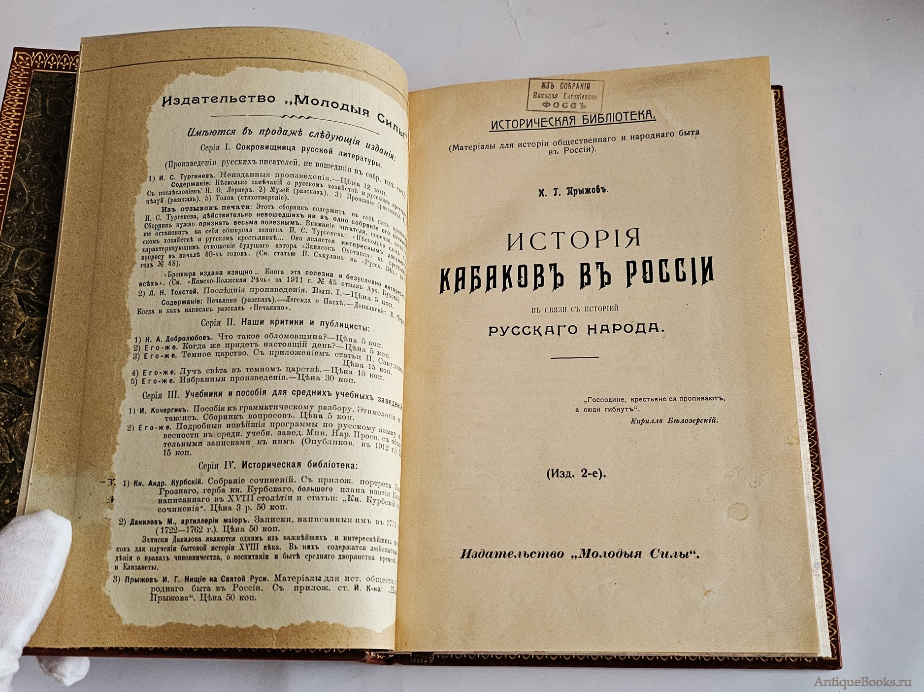 "История кабаков в России в связи с историей русского народа" И.Г.Прыжов Казань, Издательство " Молодые силы ", [1913г.]