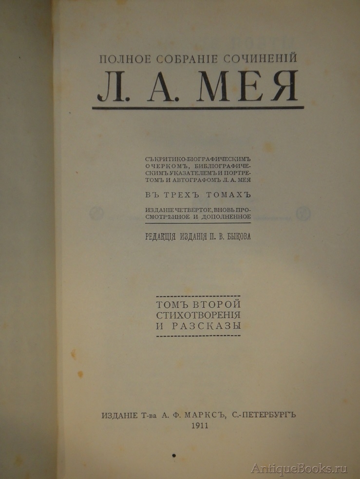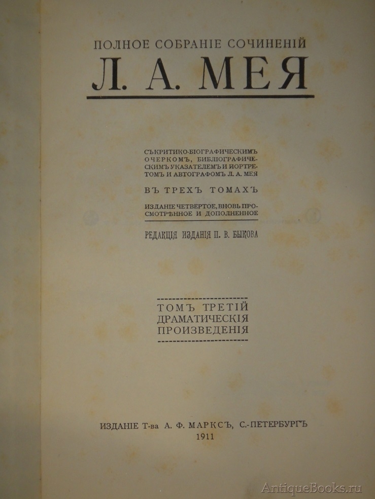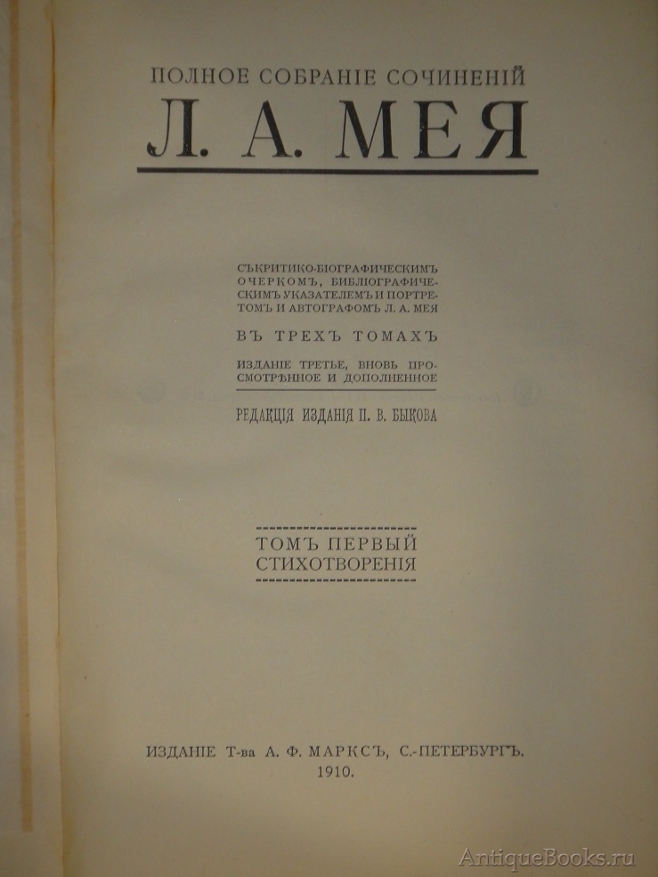 "Полное собрание сочинений Л.А.Мея. В 3-х томах" Л.А.Мей С.-Петербург, Издание Товарищества А.Ф.Маркс, 1911г.