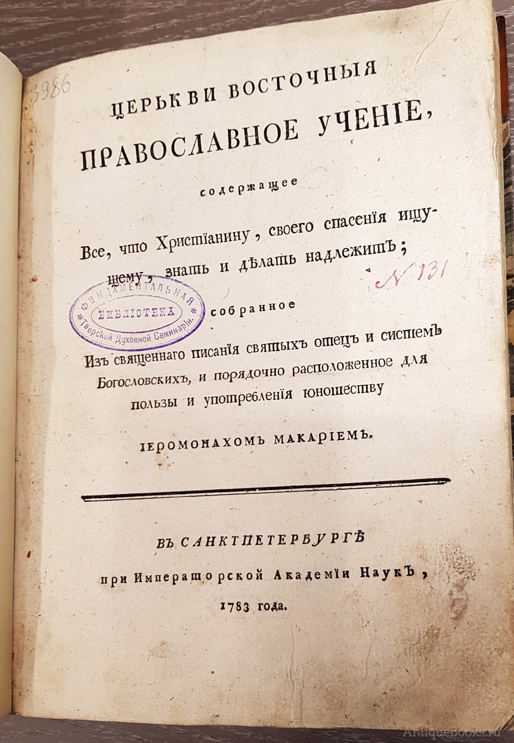 "Церкви восточные. Православное учение, содержащее все, что христианину, своего спасения ищущему, знать и делать надлежит" Иеромонах Макарий Санктпетербург, Типография Академии Наук, 1783 г.