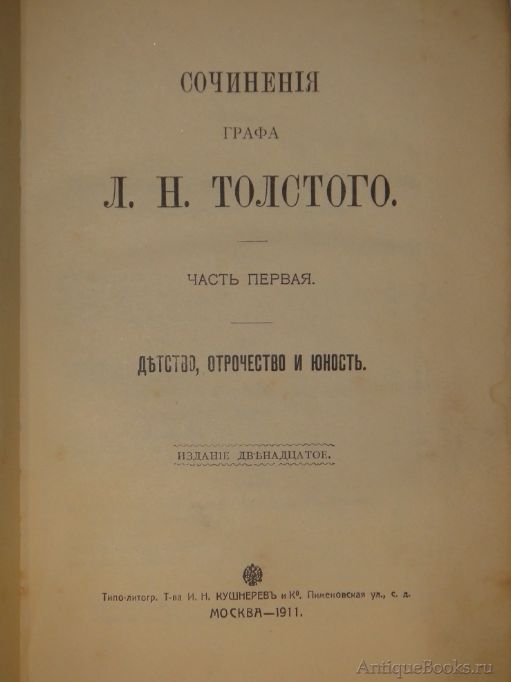 "Сочинения графа Л.Н.Толстого в 20-ти томах" Л.Н.Толстой Москва, Типография Товарищества И.Н.Кушнерёв и К°, 1911г.