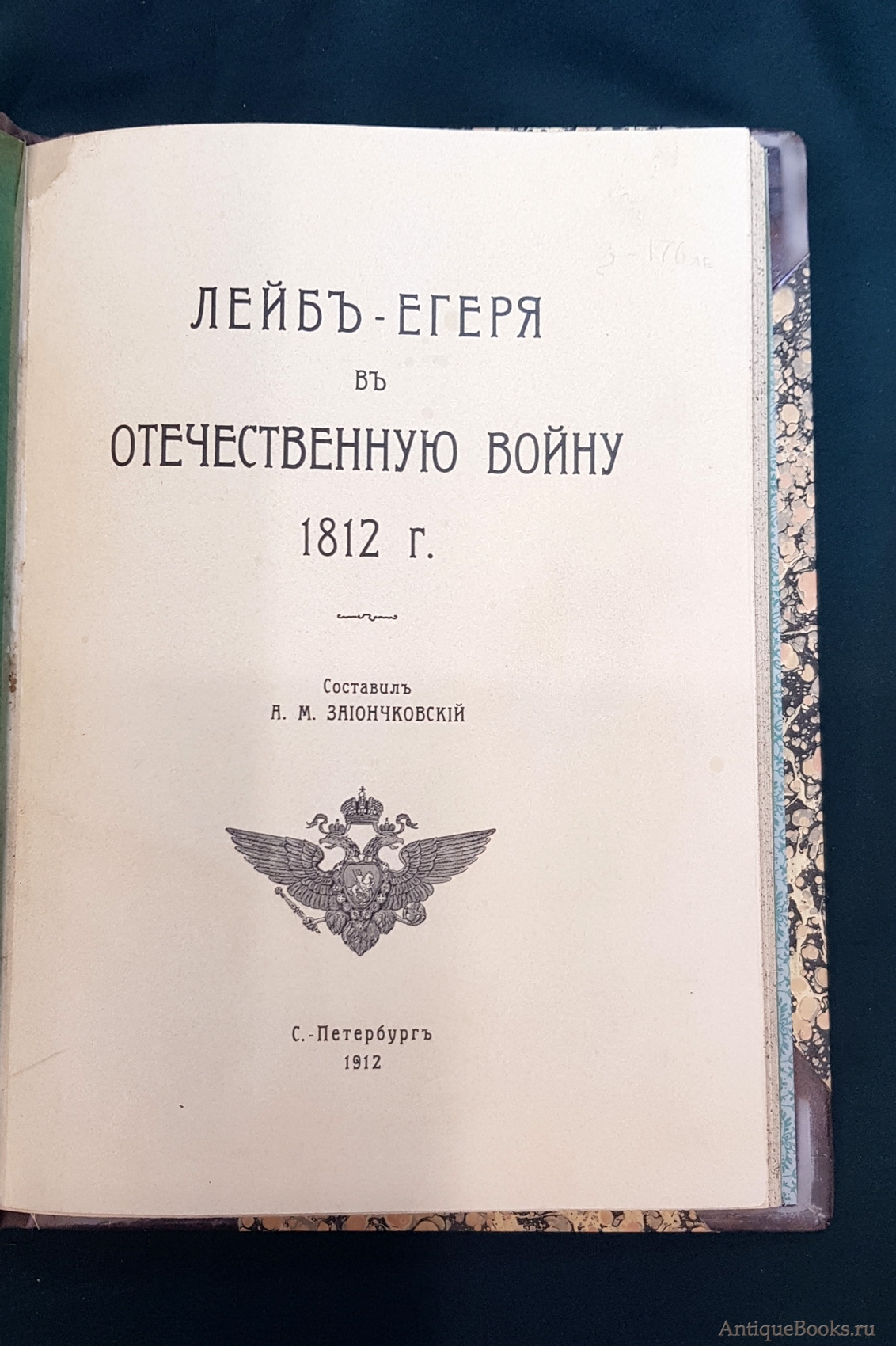 Книга «Лейб-Егеря в Отечественную войну 1812 года» была опубликована в 100-летнюю годовщину празднования победы над Наполеоном. Она предназначалась, в первую очередь, для нижних чинов Лейб-гвардии Егерского полка. Ее автор, известный военный историк и консультант Ф.А. Рубо участвующий при создании панорамы «Штурм 6 июня 1855 года», Андрей Медардович Зайончковский дважды отбывал строевой ценз в Лейб-Гвардии Егерском полку, командуя ротой и батальоном, а в 1906-1908 гг. был командиром полка. В списках Лейб-гвардии Егерского полка он числился до конца службы в Императорской армии 1917 г.