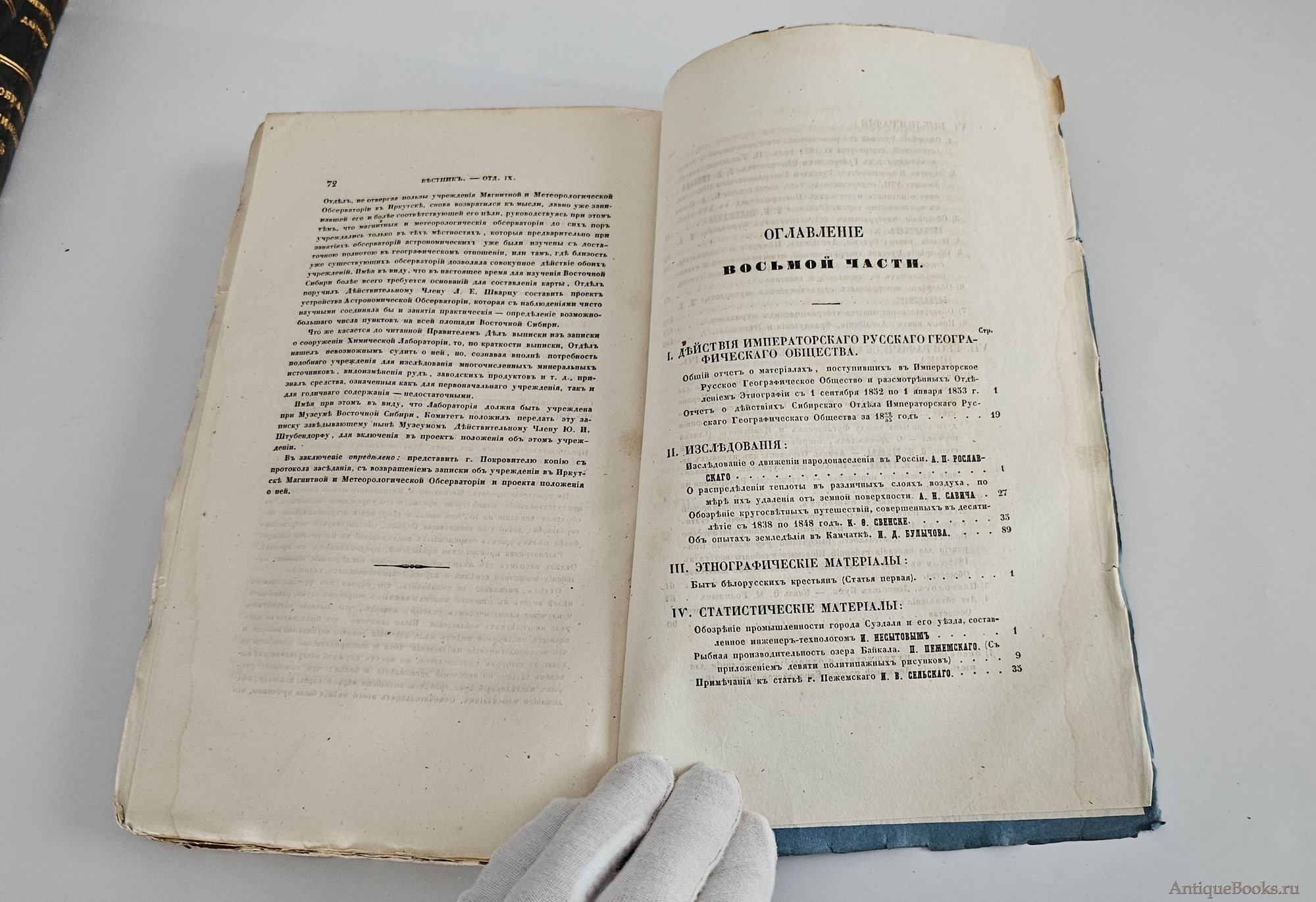 "Вестник Императорского Русского географического общества за 1853 г. Ч. 8. Книжка IV" Санктпетербург, В тип. Эдуарда Праца, 1853 г.