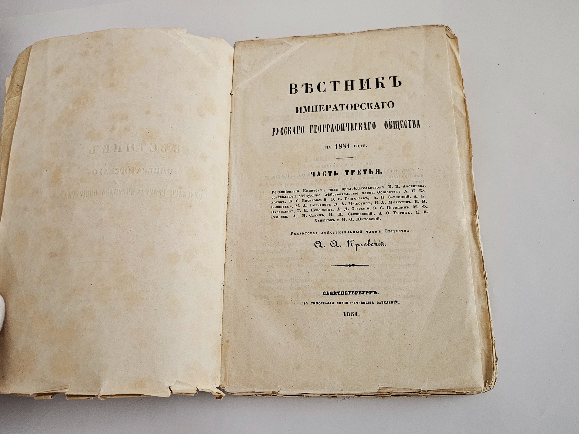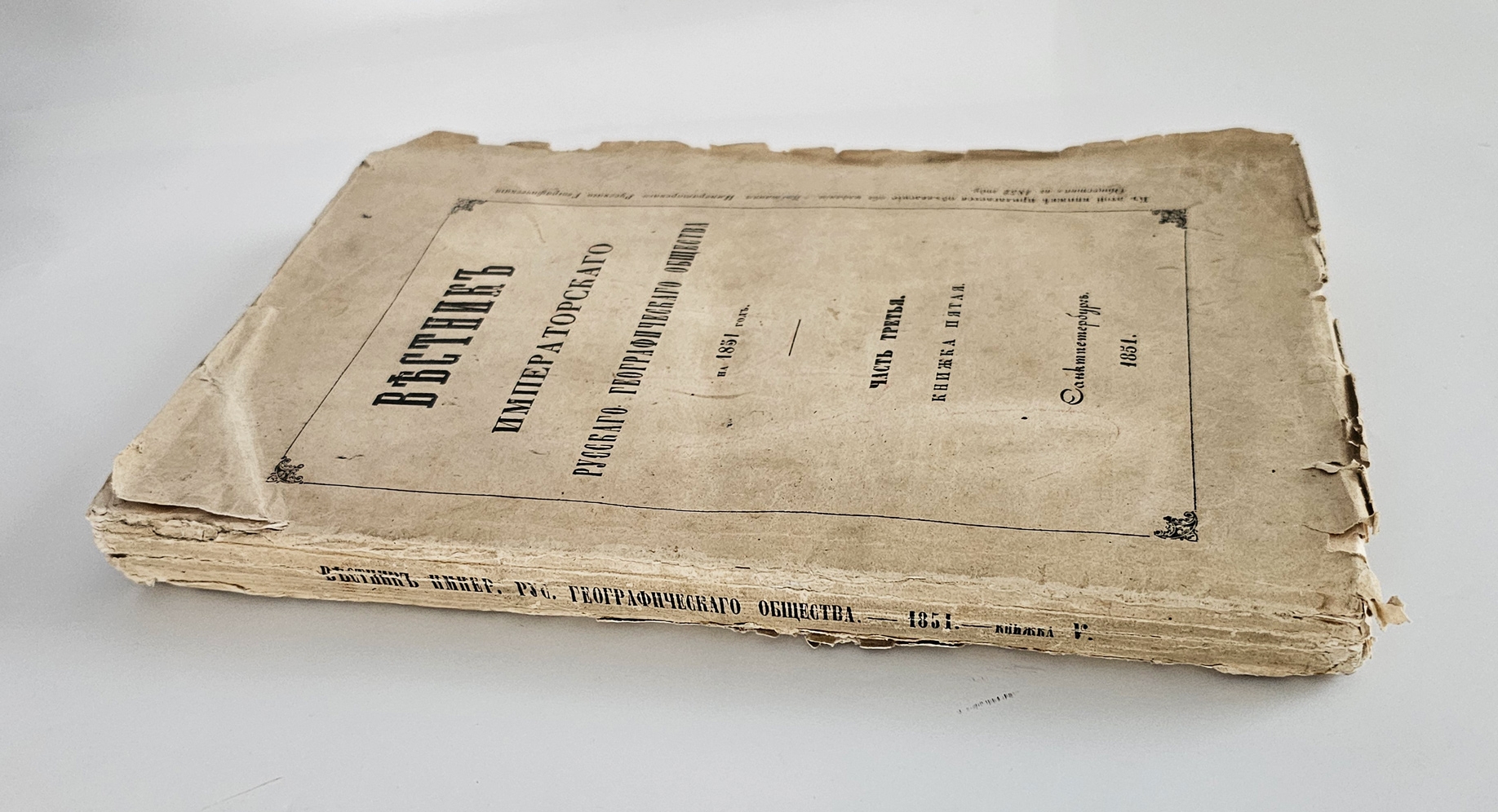 "Вестник Императорского Русского географического общества 1851 г. Ч. 3. Книжка пятая" Санктпетербург, Тип. Военно-учебных заведений, 1851 г.