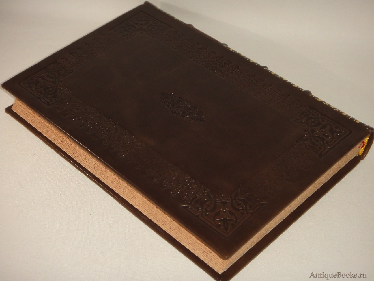 Экземпляр в великолепном цельнокожаном владельческом переплёте золотым орнаментальным тиснением на бинтовом корешке и контрастной декоративной вставке. Крышки обрамлены художественными наборными конгревными рамками с узорными виньетками в уголках. В центральной части передней крышки - название издания под золотым Императорским гербом; задняя - декорирована ажурной блинтовой арабеской.