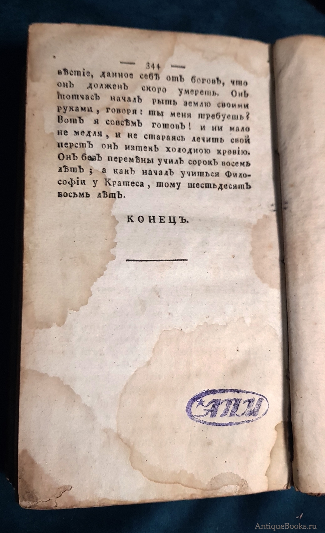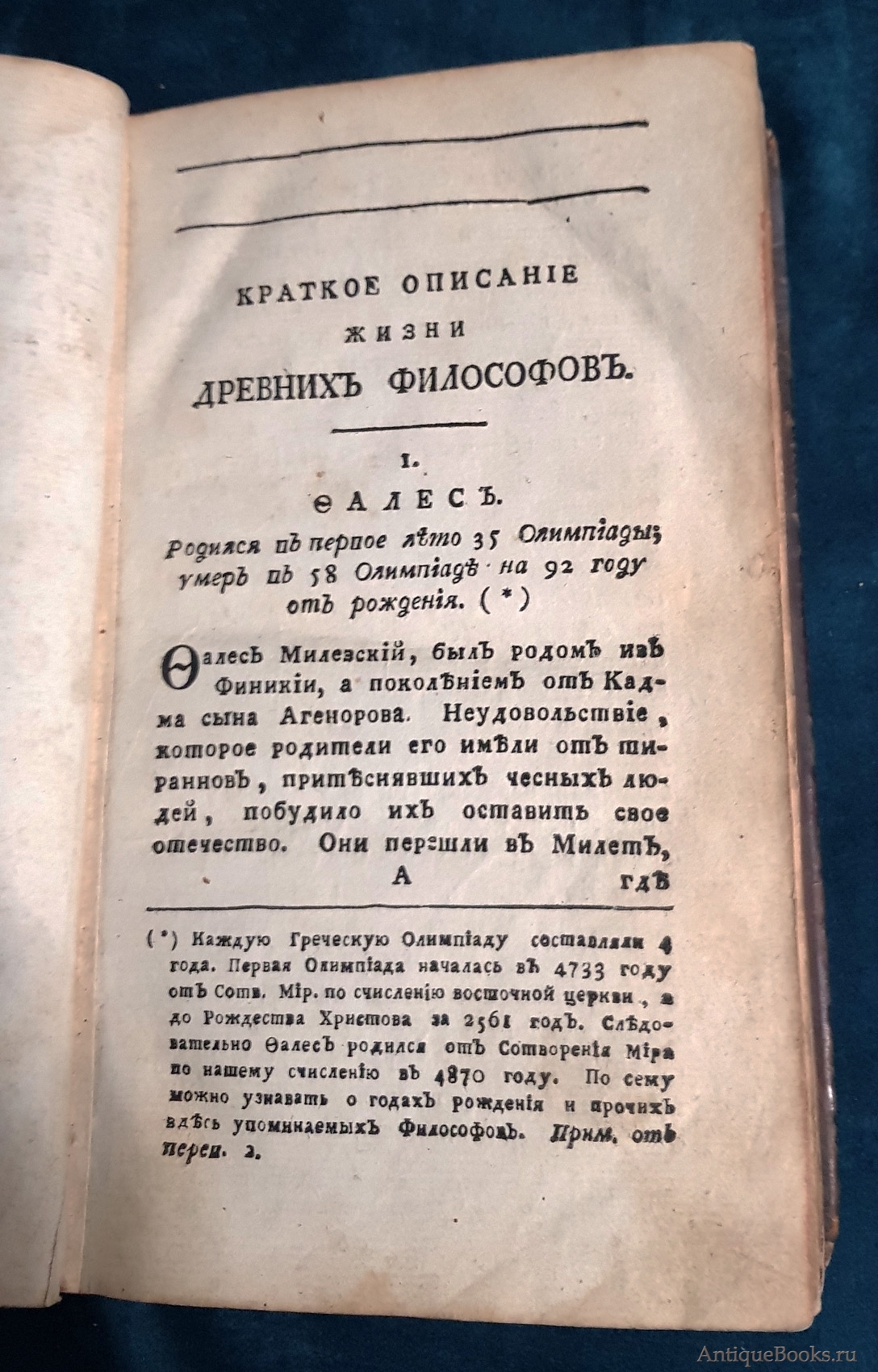 "Краткое описание жизни древних философов. С присовокуплением отборнейших их мнений, систем и нравоучений" Ф. Фенелон Москва, В Типографии Компании Типографической, с указанием дозволения, 1788 г.