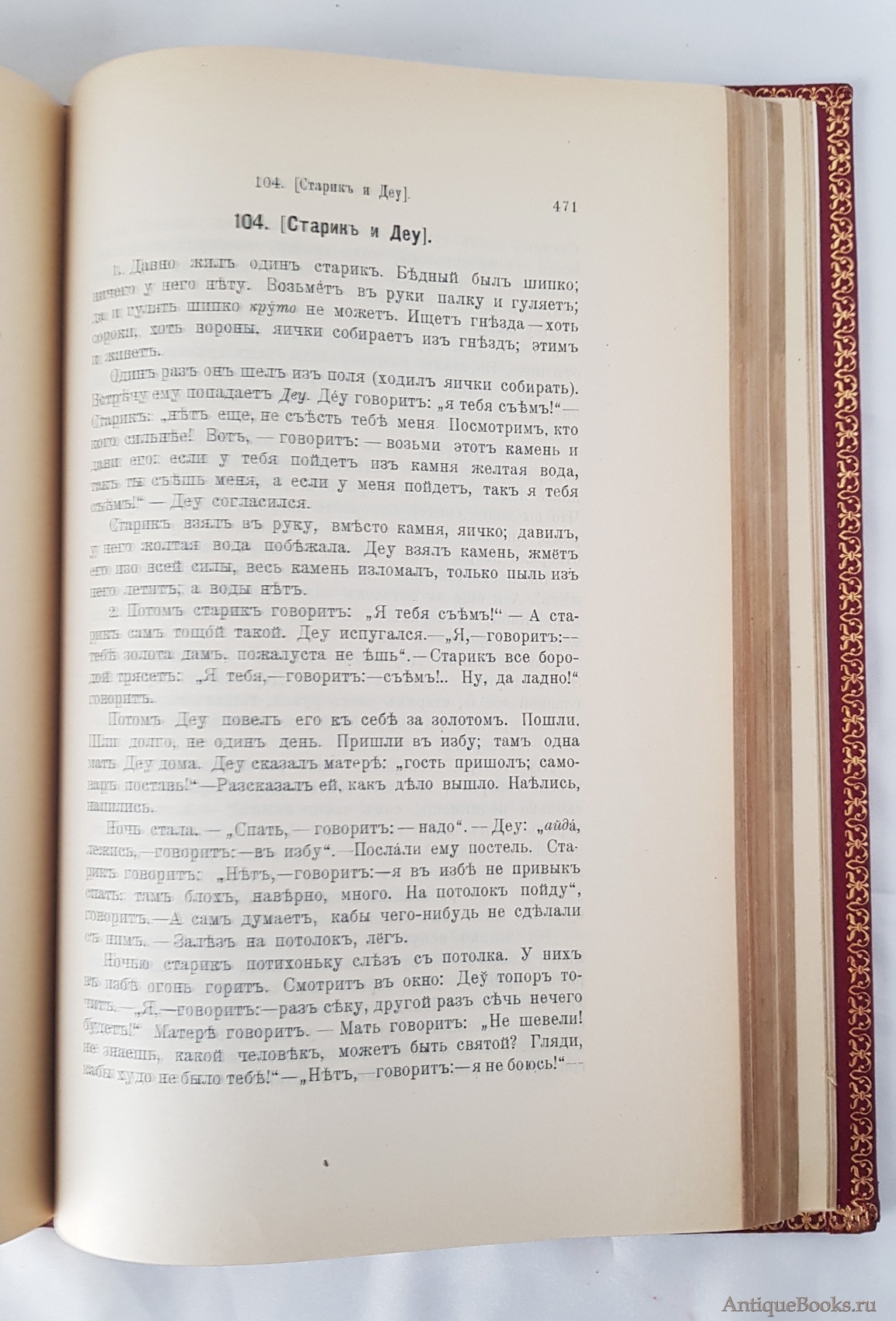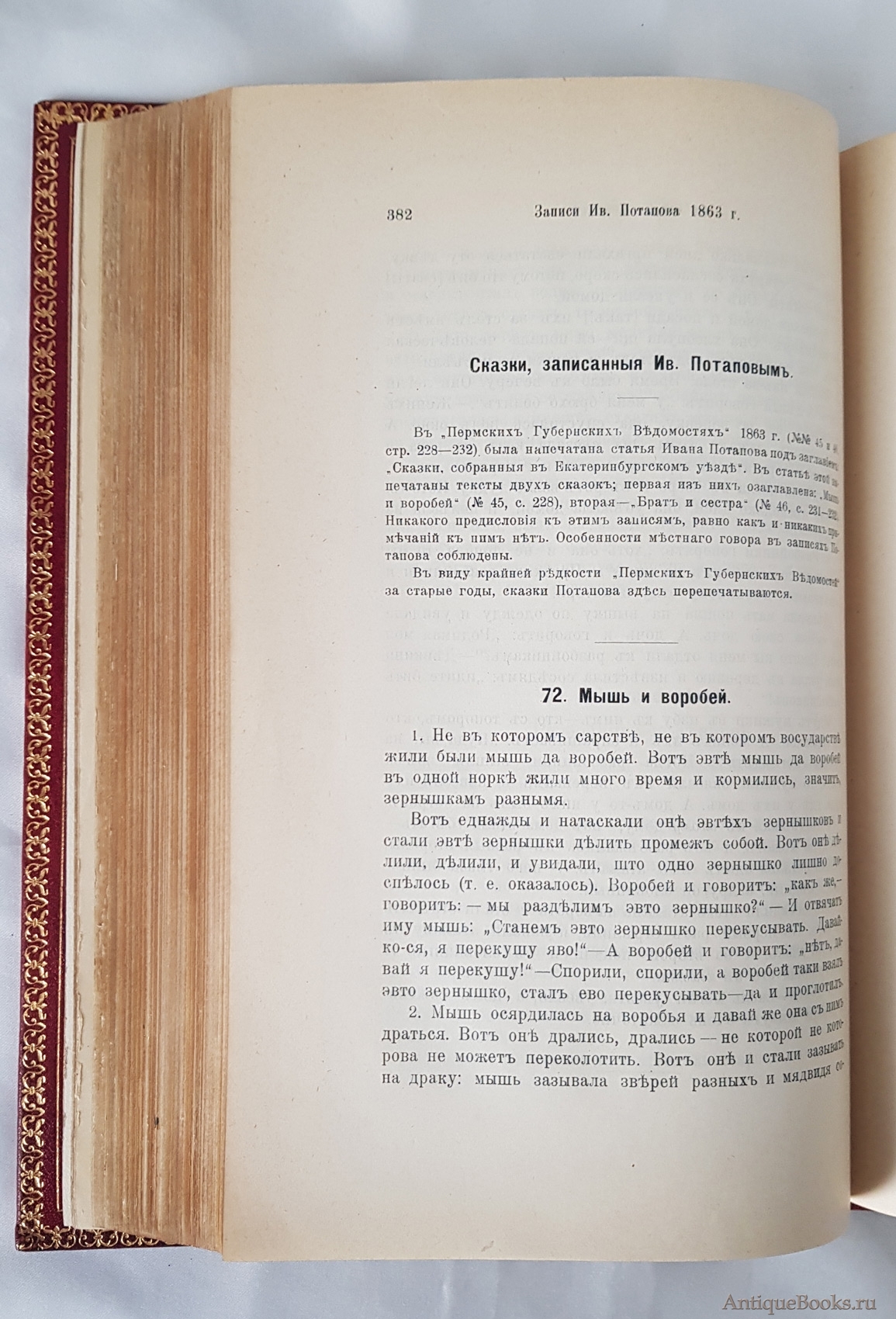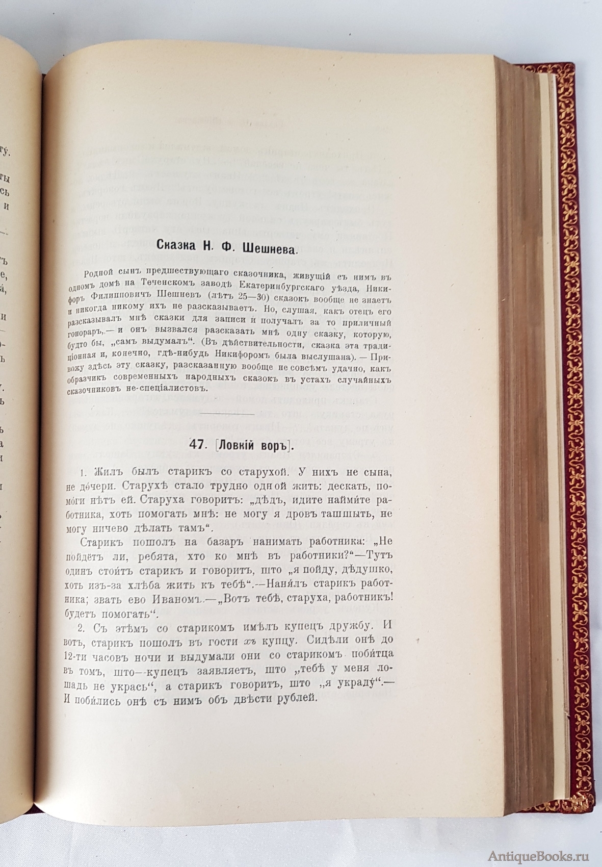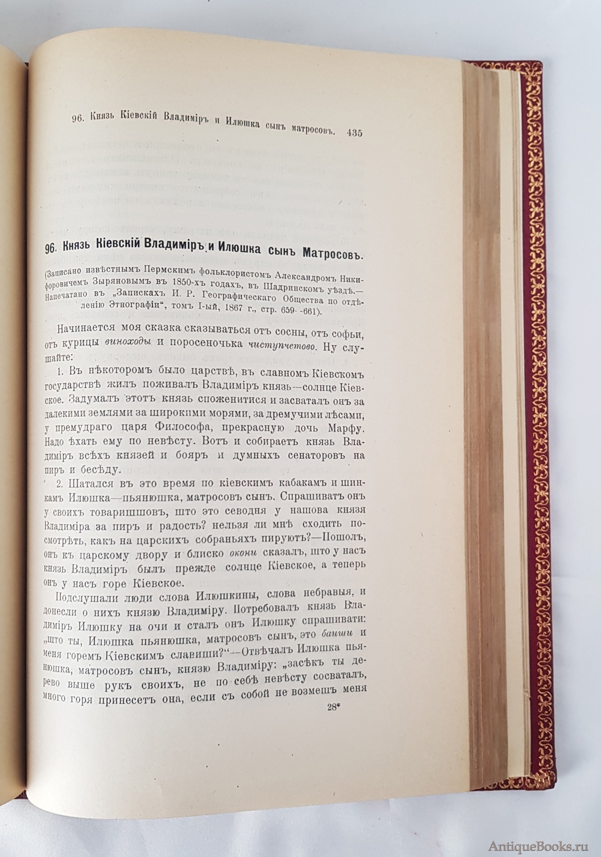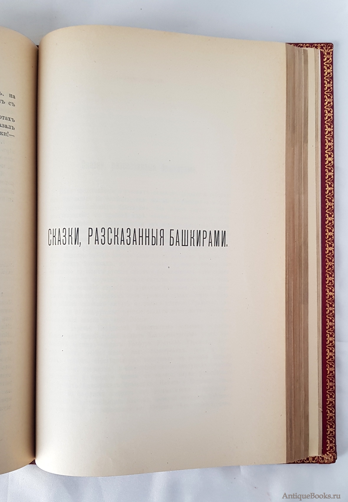 Книга в старинном очень красивом цельнокожаном переплете с растительным золотым тиснением и тройным золотым обрезом. Форзац "под мрамор". LIII, 656 стр. (Записки имп. рус. геогр. о-ва по отд-нию этнографии; Т. XLI). Формат 26х18х3 см.