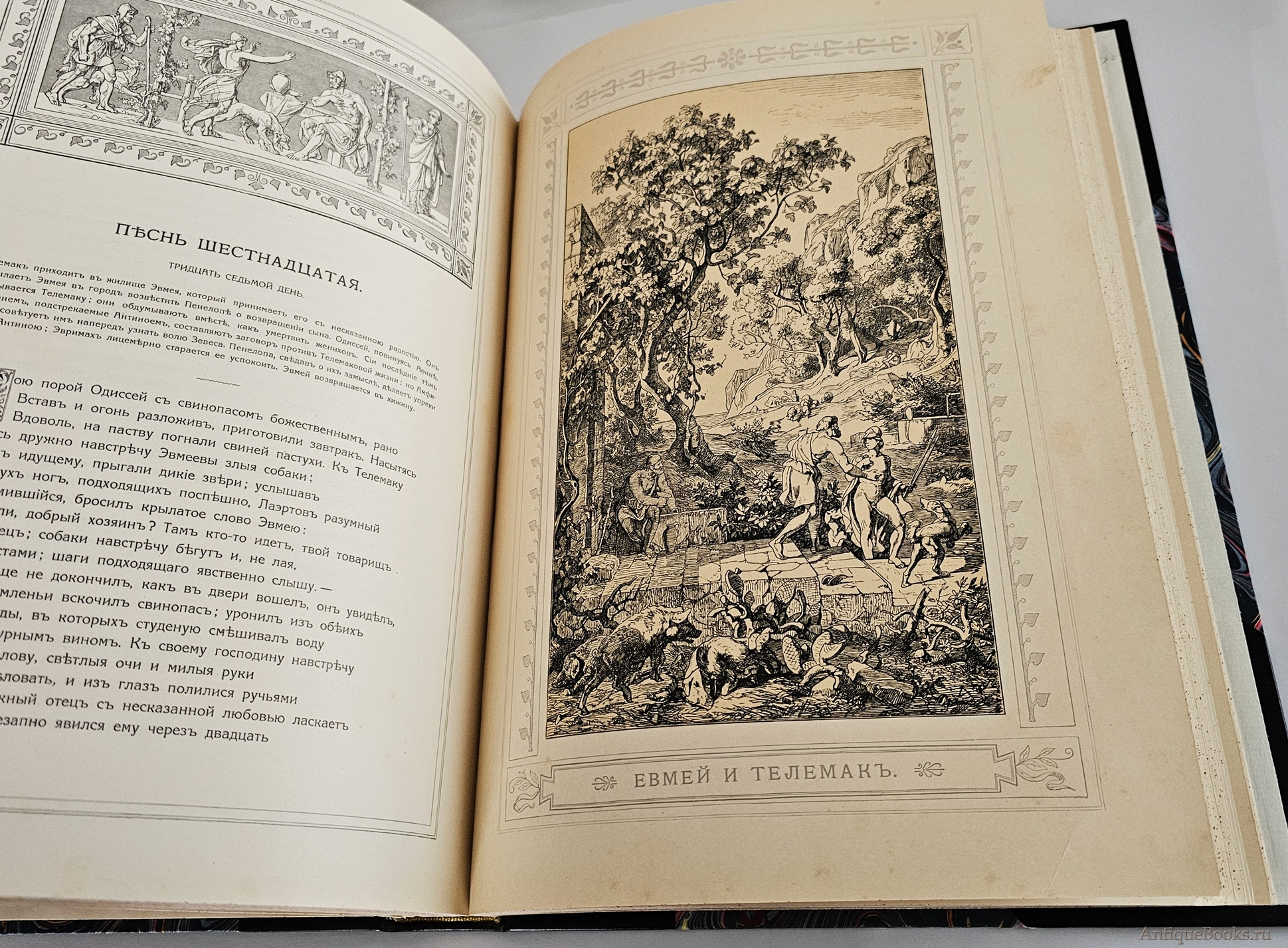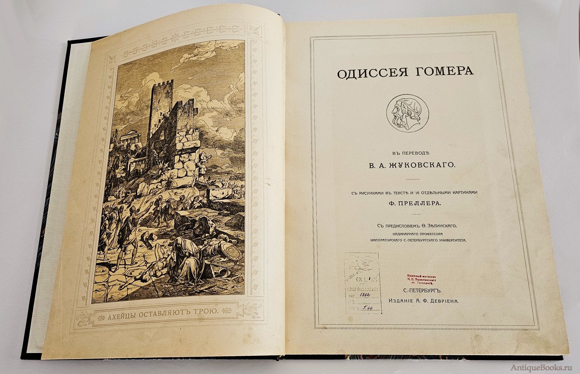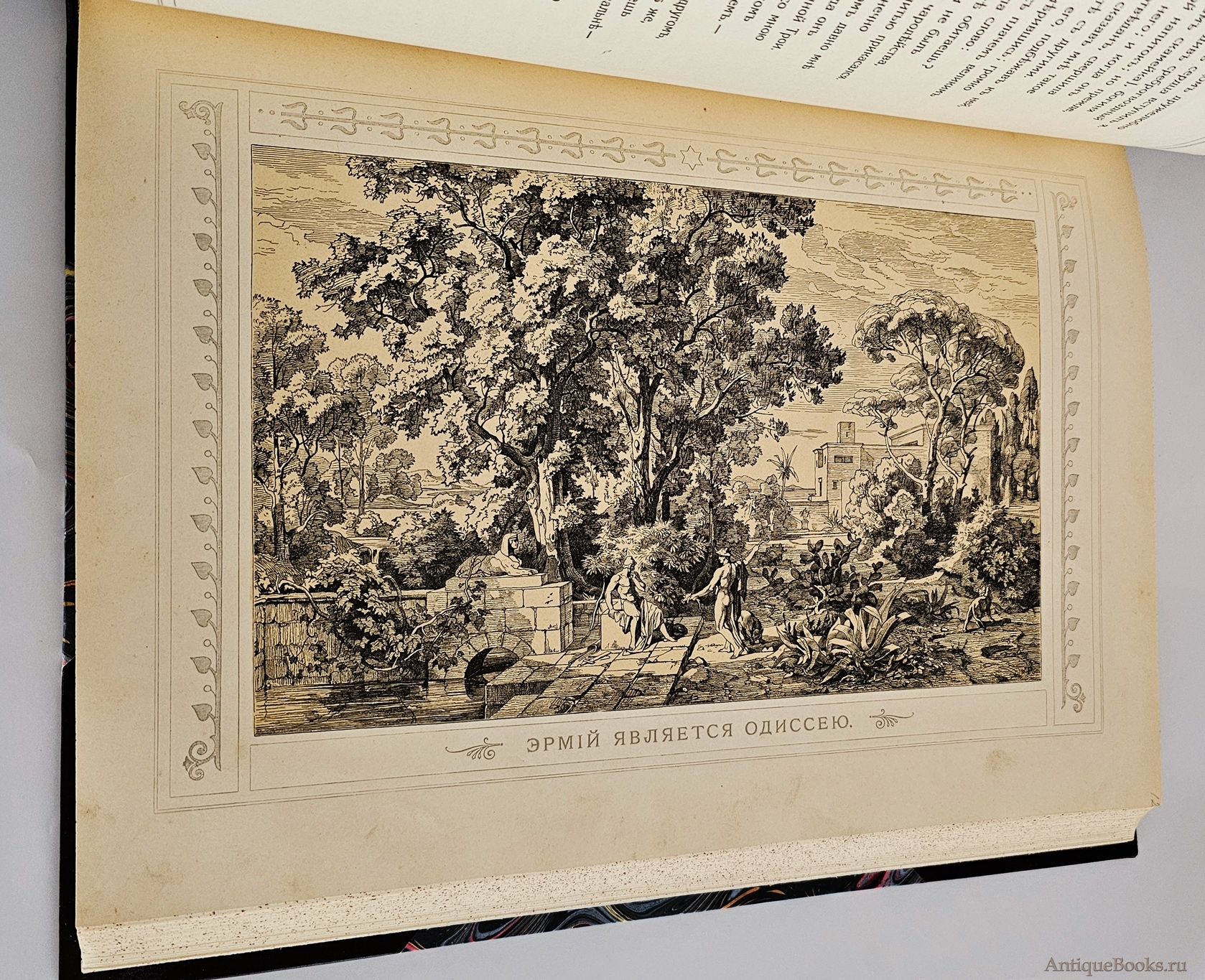 Книга в полукожаном современном переплете с роскошным золотым тиснением. Кожаный большие уголки. Книга большого формата: 35,5x26,5 см. Каждая страница в рамке. С рисунками в тексте и 16 отдельными картинами Ф.Преллера. С предисловием Ф.Зелинскаго. XVI, 312 cтр.; Плотная качественная бумага. Издание оригинально украшено художественными зарисовками, стилизованными заставками, концовками и виньетками. Отлично проиллюстрированное издание. Хорошая сохранность. На титульном листе экслибрис частной библиотеки.