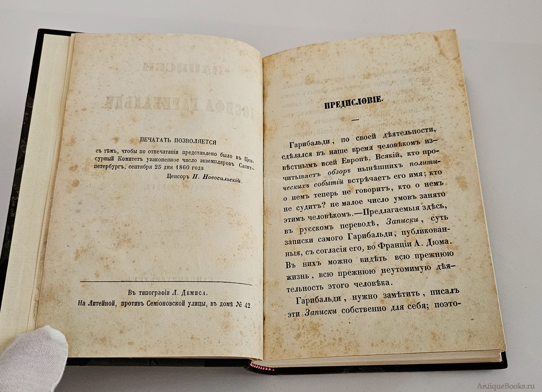 "Записки Иосифа Гарибальди" Санктпетербург, в типографии Л.Демиса, 1860 г.