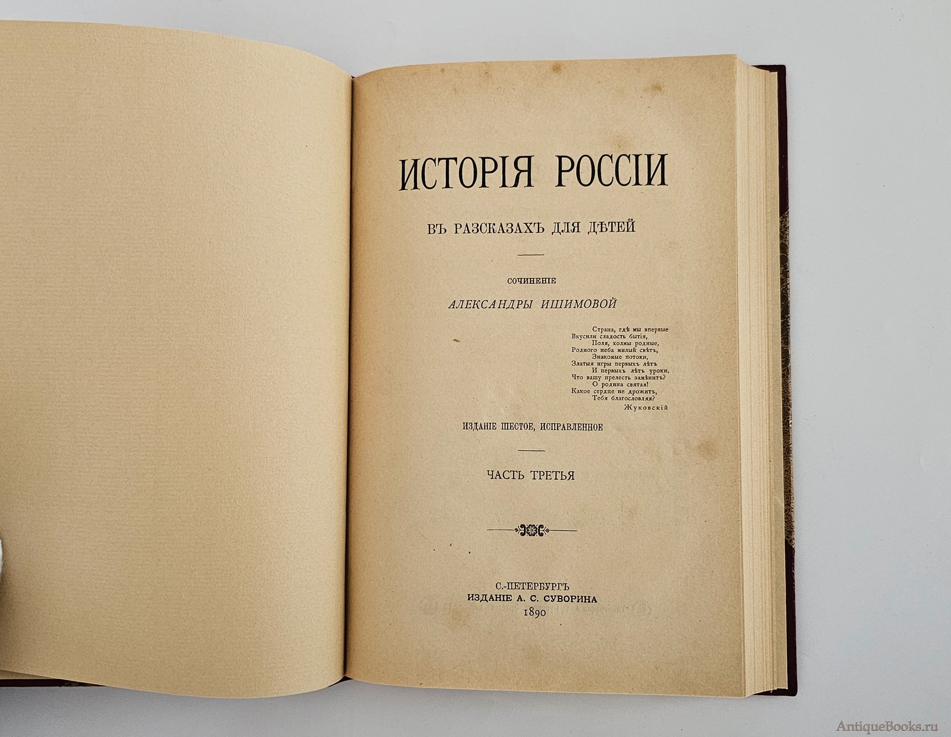 "История России в рассказах для детей" А.О.Ишимова СПб.: изд. А.С. Суворина, 1890 г.