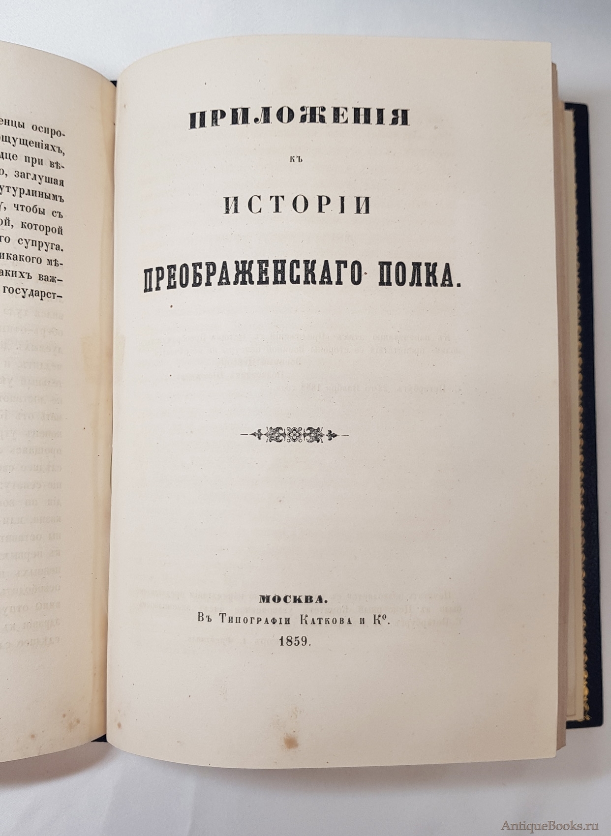 "История Преображенского полка" Лейб-Гвардии Преображенского полка Штабс-капитан Азанчевский 1-й Москва, В типографии Каткова и К, 1859 г.
