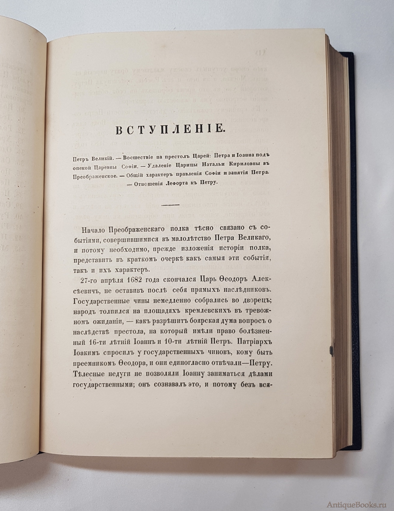 Первое и единственное издание. Знаменитое фундаментальное историческое исследование, подготовленное офицером-преображенцем Матвеем Павловичем Азанчевским, посвящено истории первого полка русской гвардии, который был создан в 1683 году по воле юного Петра Великого из числа сверстников " детей боярских " в придворном селе Преображенском под Москвой для " потешных воинских забав ". С 1687 года Преображенский " потешный полк ", а также второй полк " потешных ", возникший в соседнем селе Семёновском, стали именоваться солдатскими. С началом Северной войны в августе 1700 года полк впервые официально получил название лейб-гвардии Преображенского. Сам самодержец прошёл все ступени служебной лестницы в этом полку, дослужившись в 1706 году до звания полковника. С этого времени все Российские государи и государыни, занимавшие царский трон, получали это звание и являлись шефами полка. За годы петровского правления лейб-гвардии Преображенский полк превратился в подлинную опору престола и кузницу кадров для рождающейся Империи. Полк, формировавшийся в основном из дворян, принимал участие во всех решающих сражениях и походах конца XVII - первой четверти XVIII века: от Азовских военных кампаний ( 1695-1696 ) до походов в Персию ( 1722-1723 ). Обо всех этих событиях подробно рассказывается в книге М.П.Азанчевского " История Преображенского полка ". В ней также опубликовано большое количество документальных материалов о боевой деятельности полка, действовавшего в основном под руководством самого Петра I.