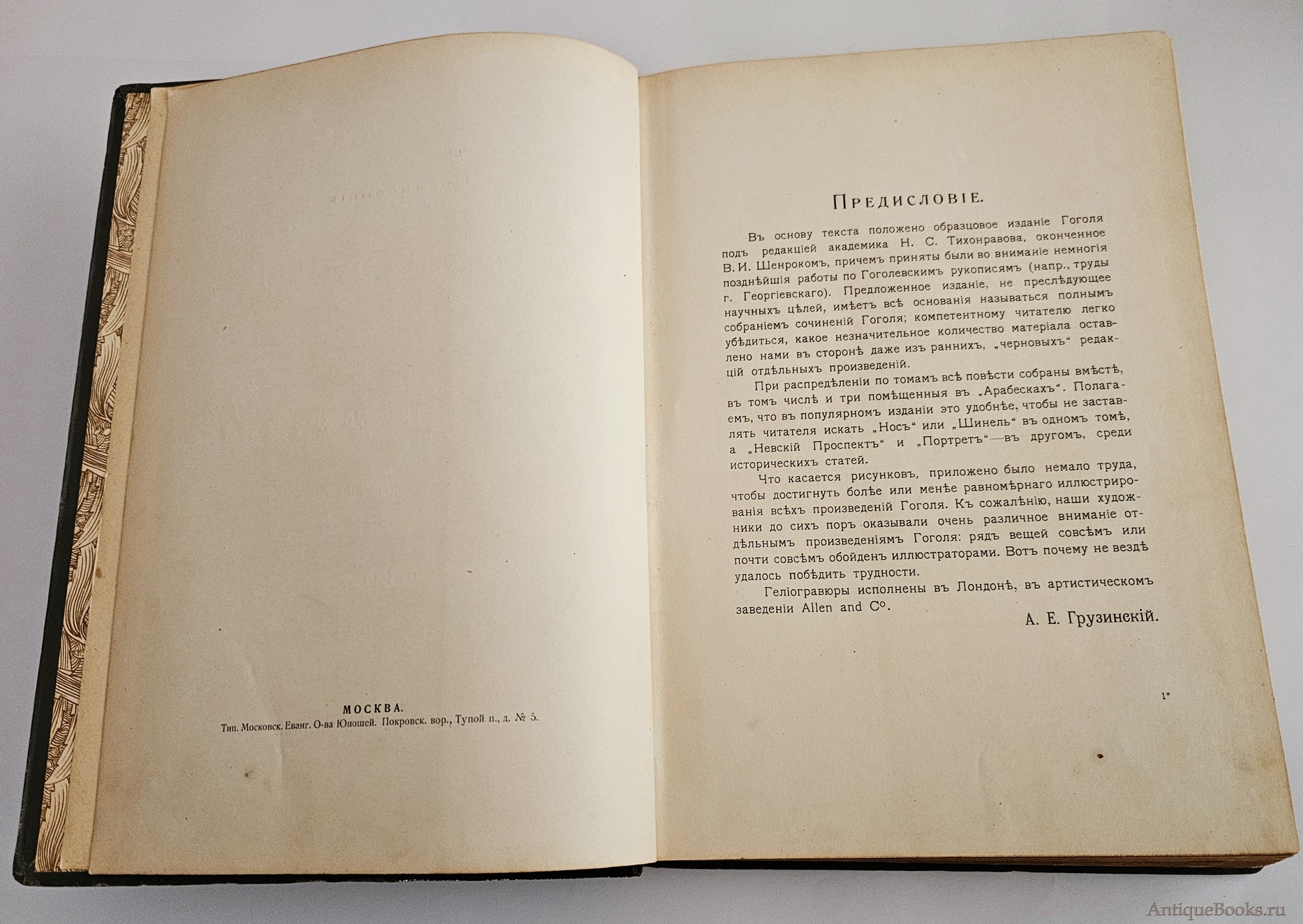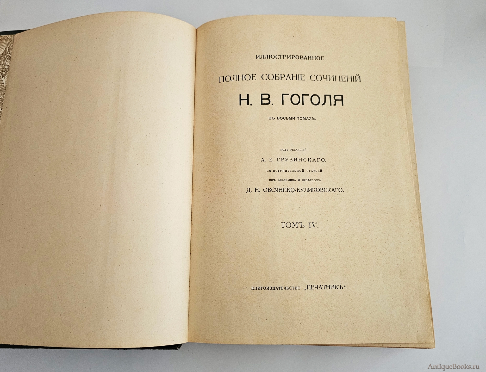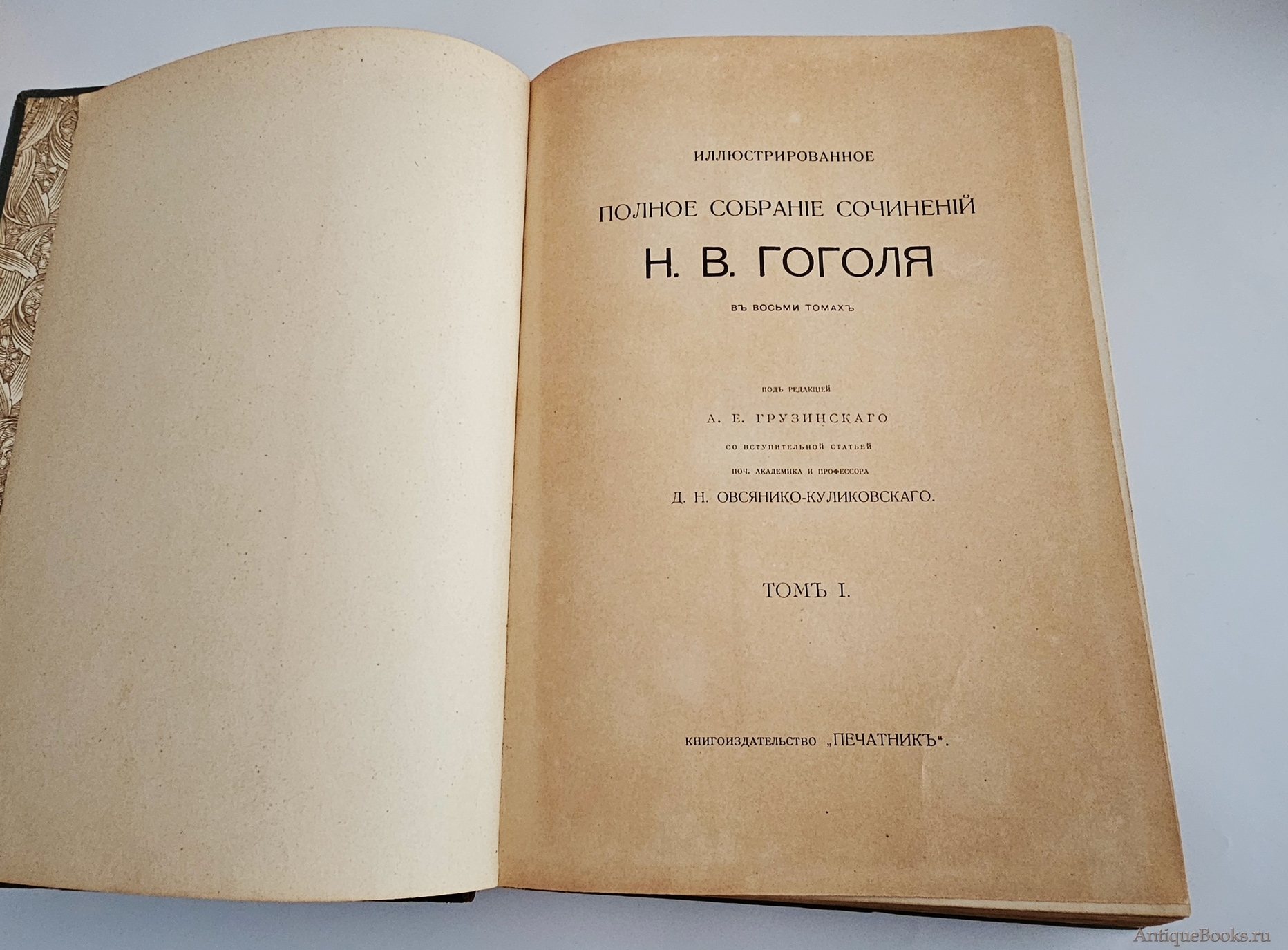 Том 1. Н.В.Гоголь. Биографический очерк А.Е.Грузинского. Гоголь в его художественных произведениях. Д.Н.Овсянико-Куликовского. Вечера на хуторе близ Диканьки. Ч.1-2. 1912. XLII, LXXXI, 210 стр. с илл; 9 листов иллюстраций, портрет.