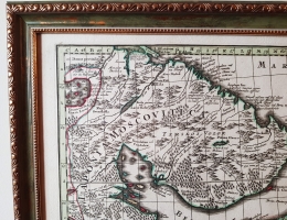 Размер карты по рамке: 110x69 см. Ручная раскраска того времени. Гравюра на меди. Отличная сохранность.
