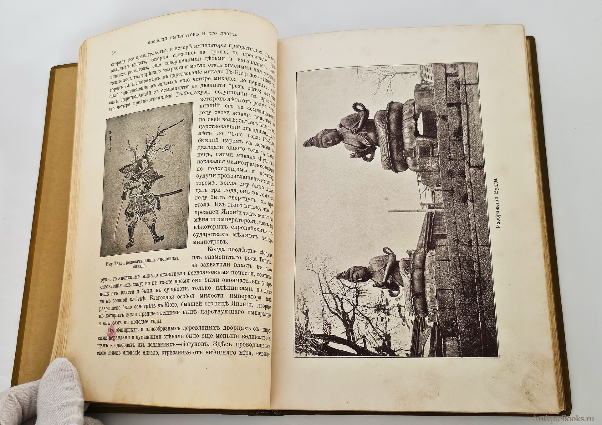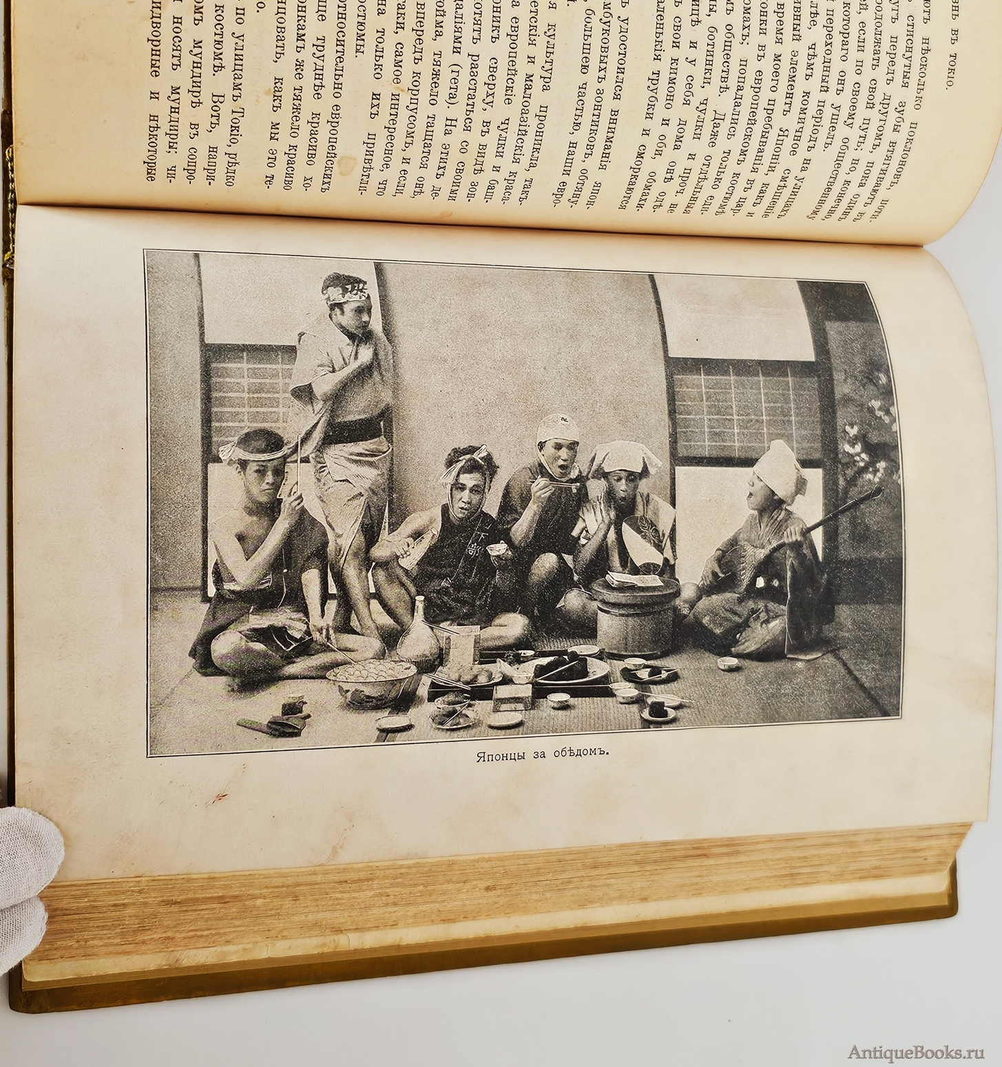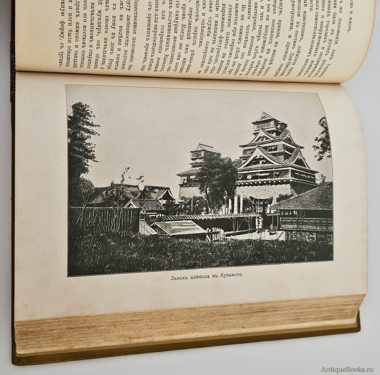 Экземпляр в издательском иллюстрированном переплете. С 28 отдельными гравюрами, 100 рисунками в тексте и картой Японской Империи. Перевод со 2-го немецкого исправленного и дополненного. 284 стр. Плотная мелованная бумага. Хорошая сохранность.