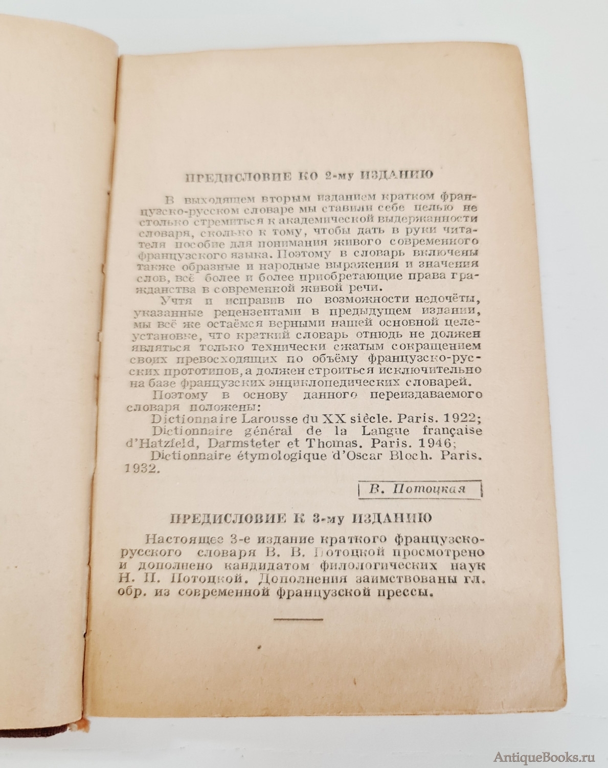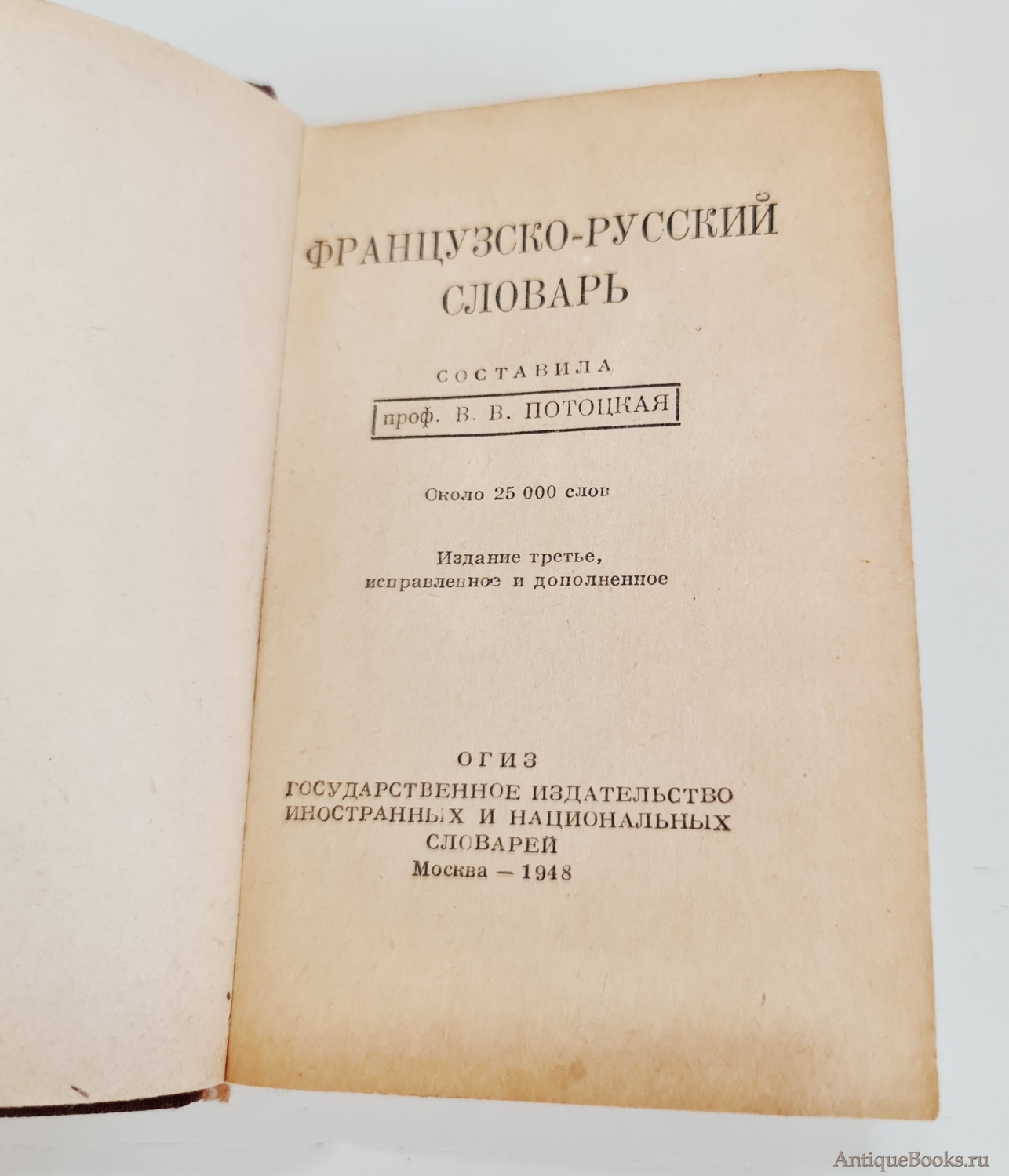Фотографии предлагаемого издания "Французско-русский словарь". В.Потоцкая. Москва, ОГИЗ, 1948 г.