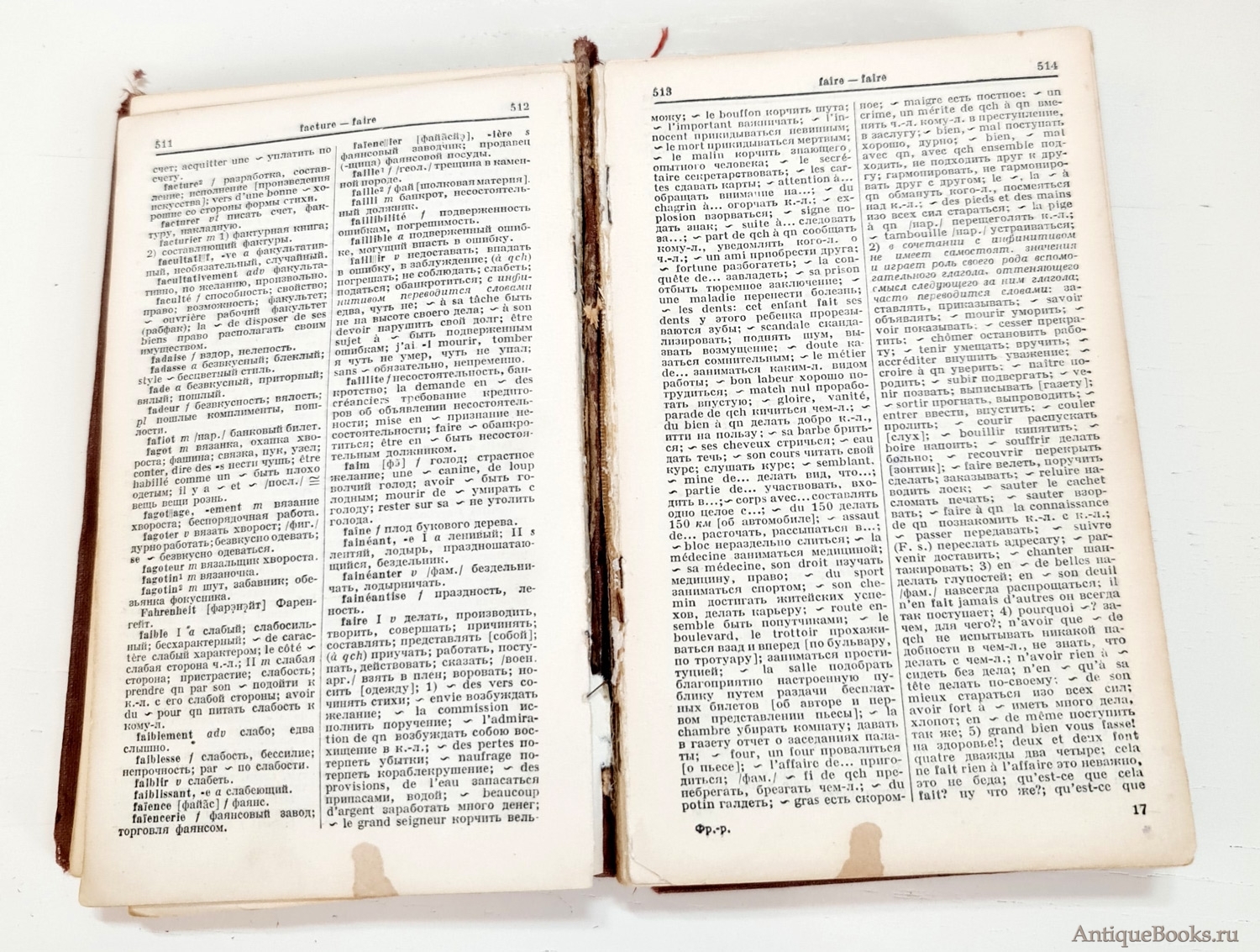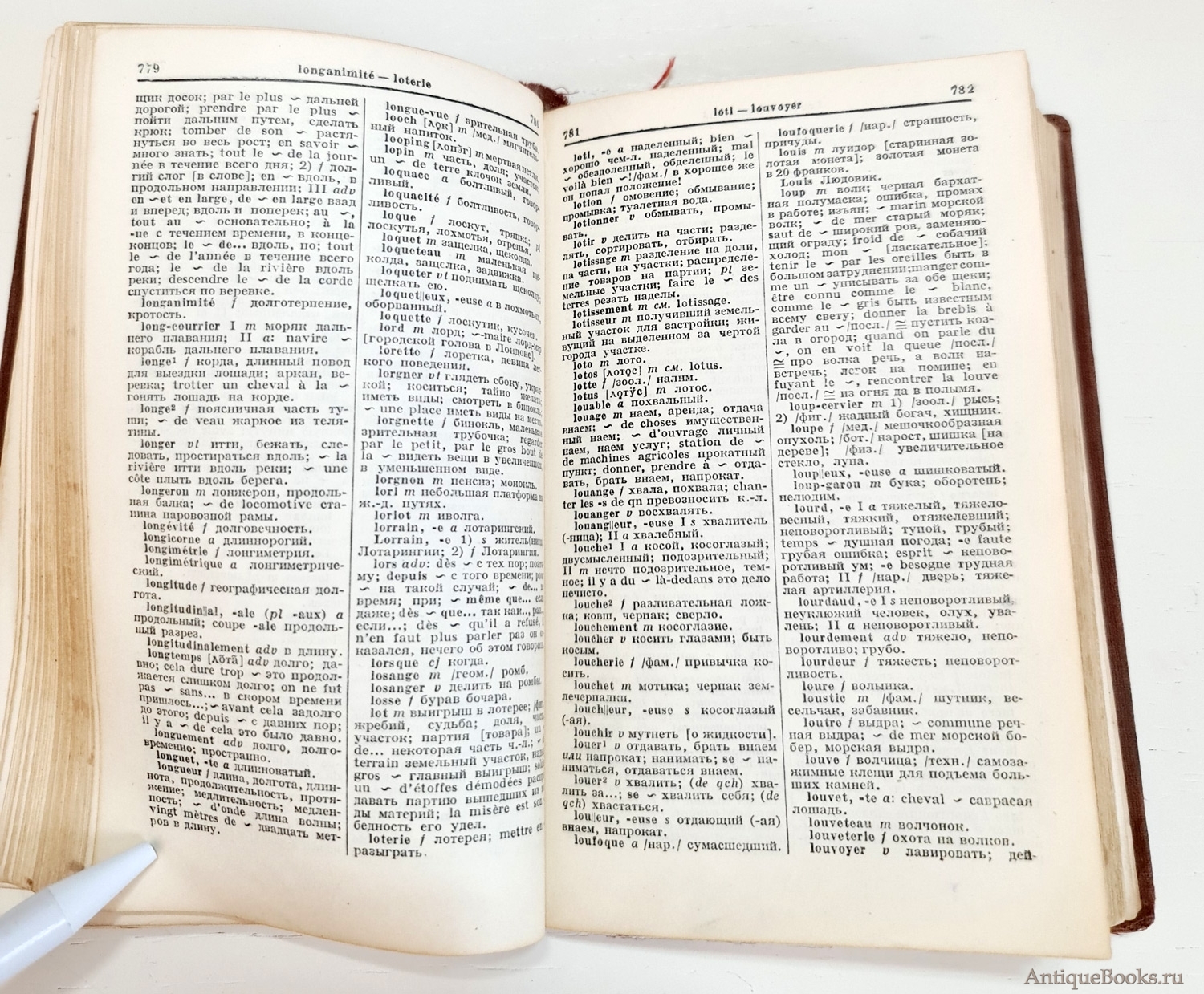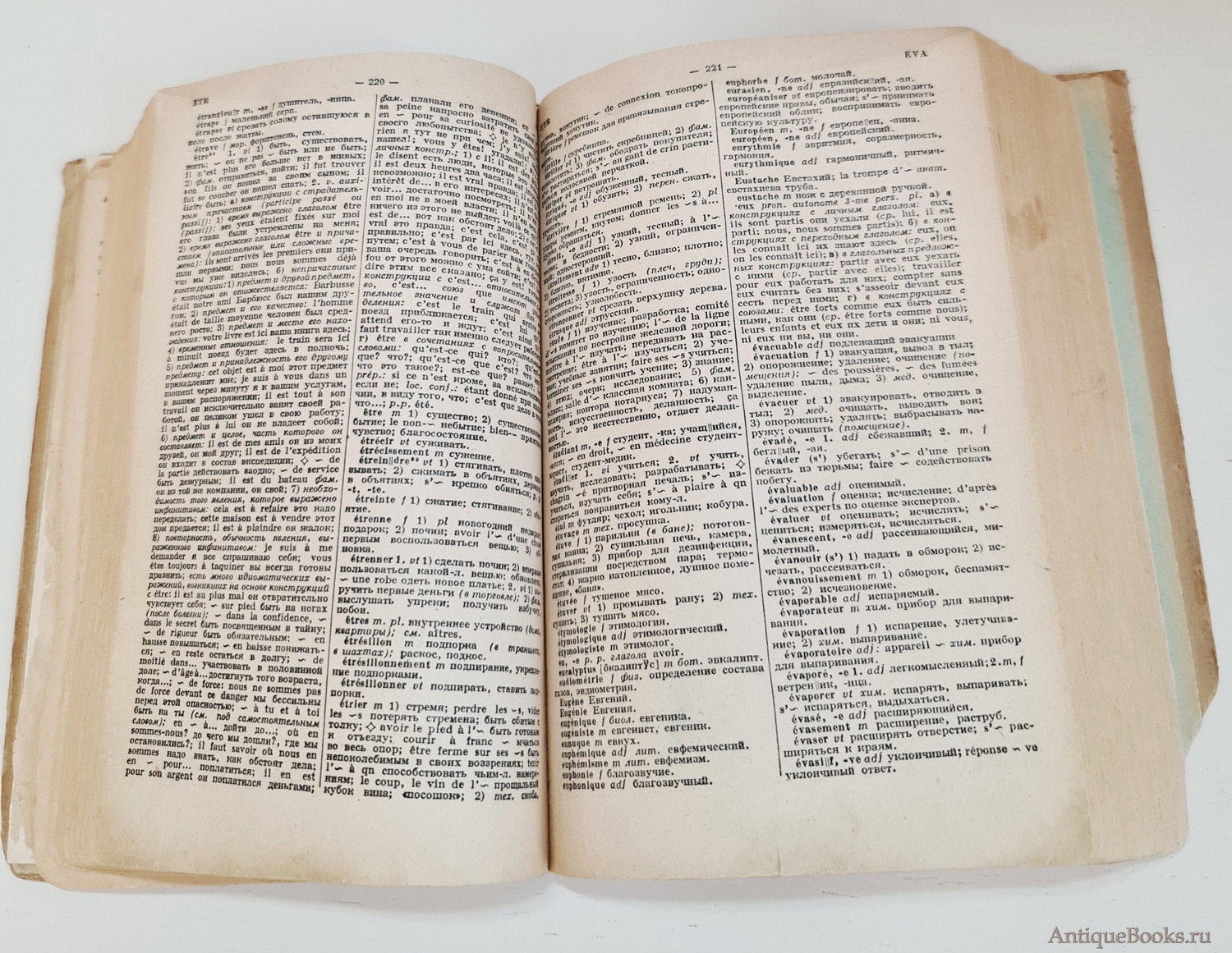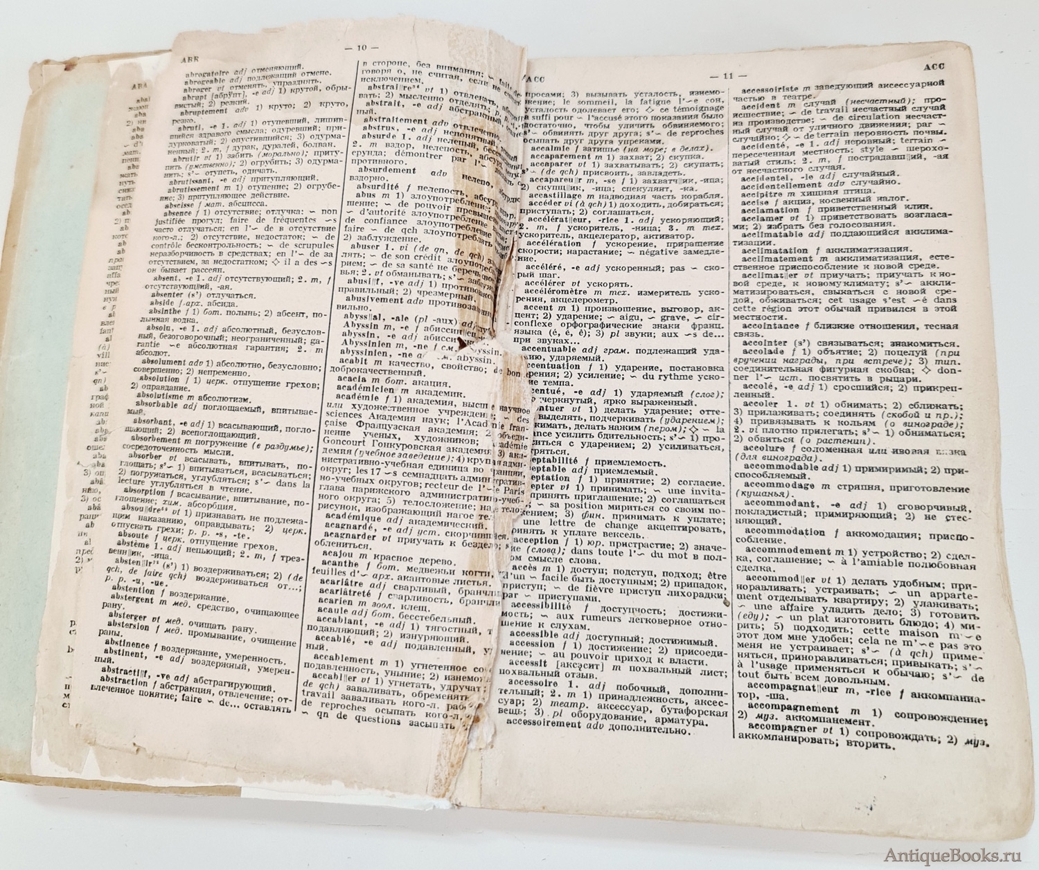 2. Французско-Русский словарь без титульной и первых 6 страниц. Листы 7-10 в плохом состоянии. 684 стр. Формат книги 20х13х4 см. Выходных данных нет.