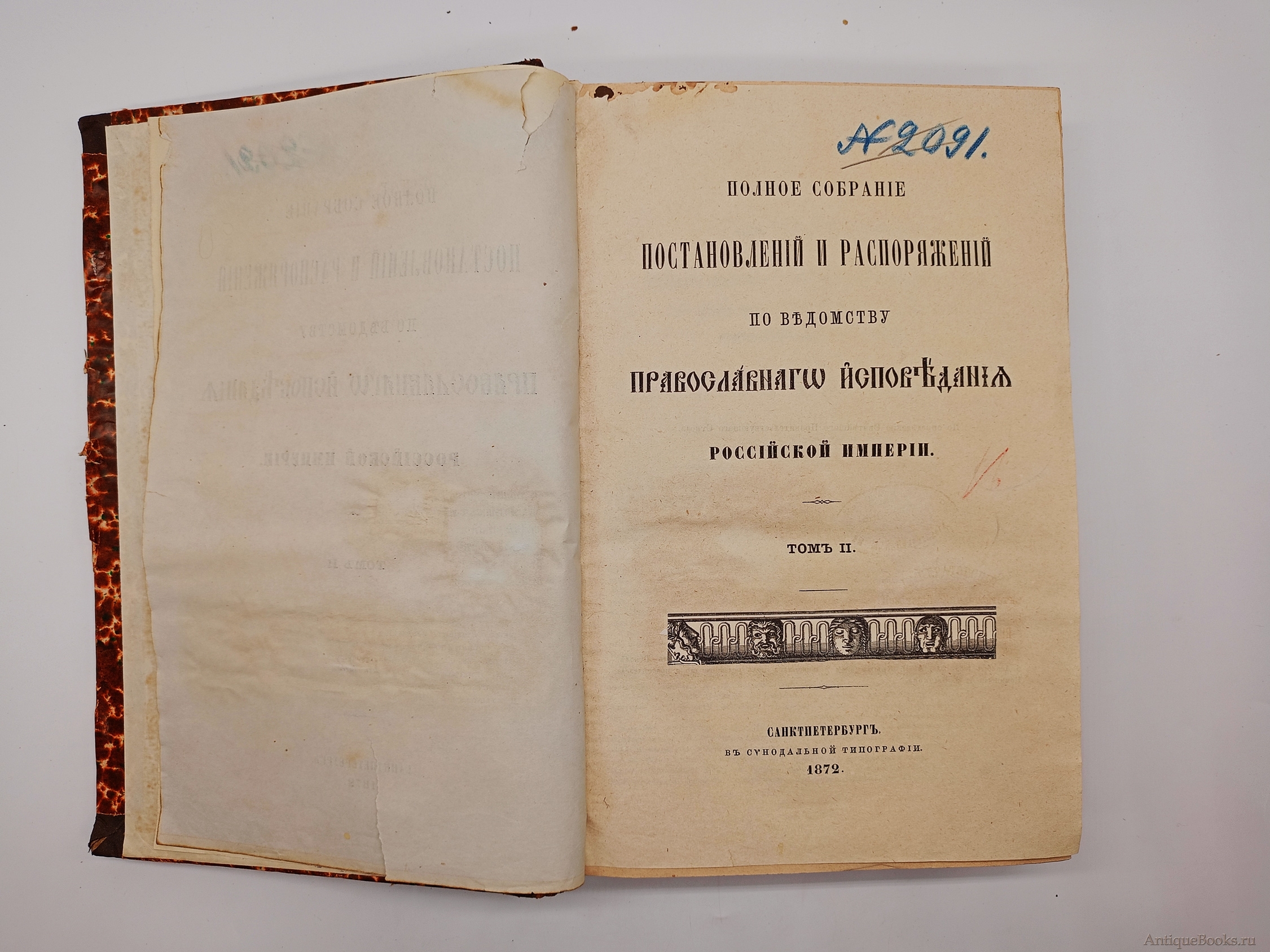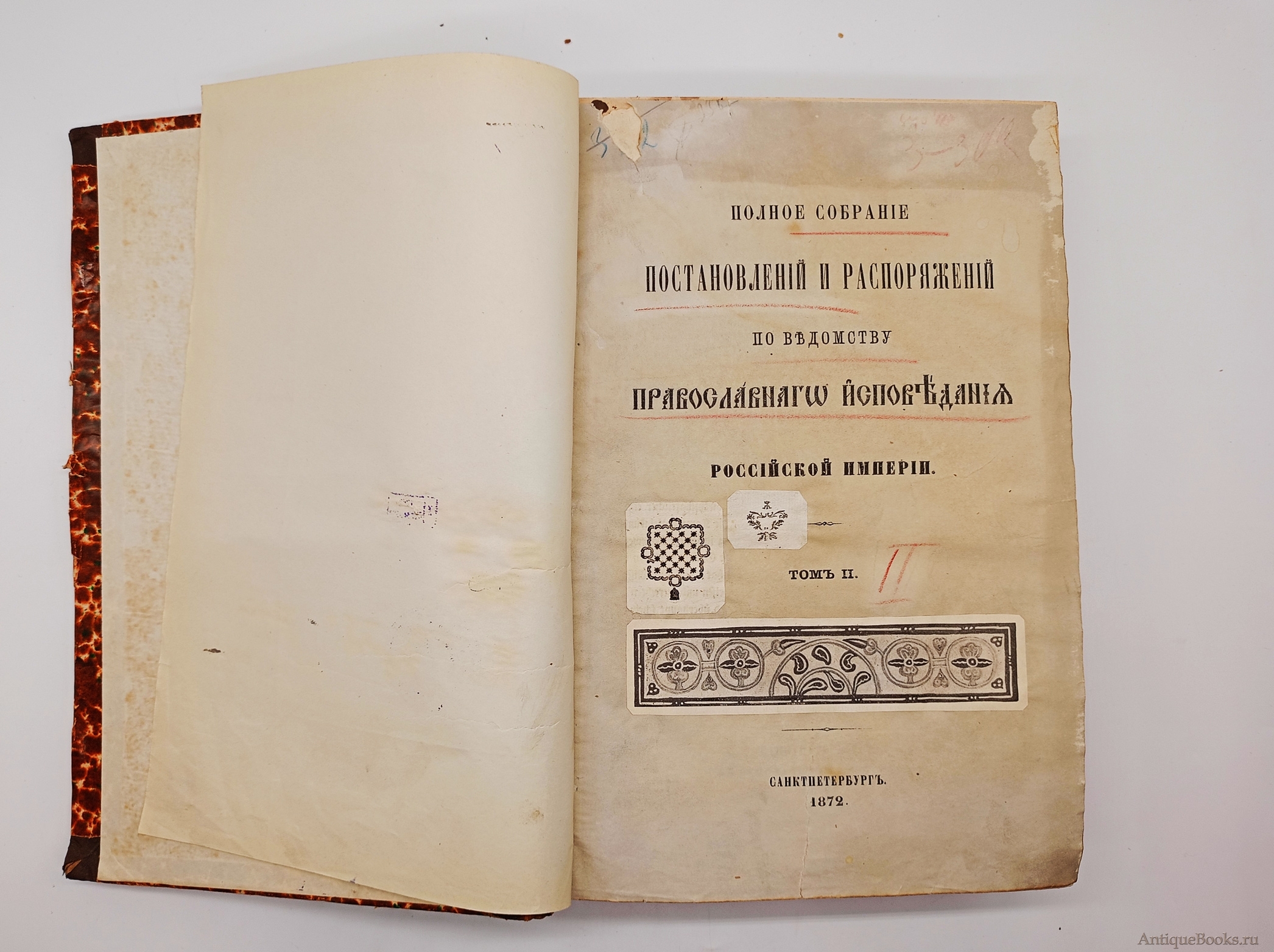 Фотографии предлагаемого издания "Полное собрание постановления и распоряжений по ведомству православного исповедания Российской империи. Том 2". СанктПетербург, В Синодальной типографии, 1872 г.