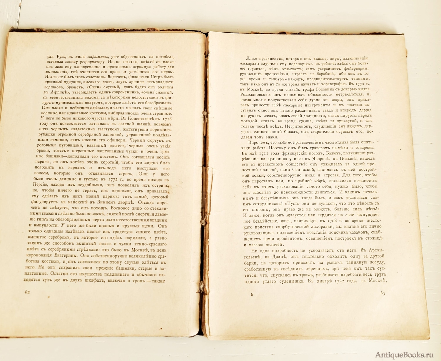 Книга во владельческом переплете с наклеенной обложкой. Задняя картонажная обложка сохранена. Блок распадается на тетрадки. Некоторые страницы отсутствуют (3-4, 11-12, 21-22, 31-36, 47-48, 63-64, 129-130). Страница 76-77 испачкана.
