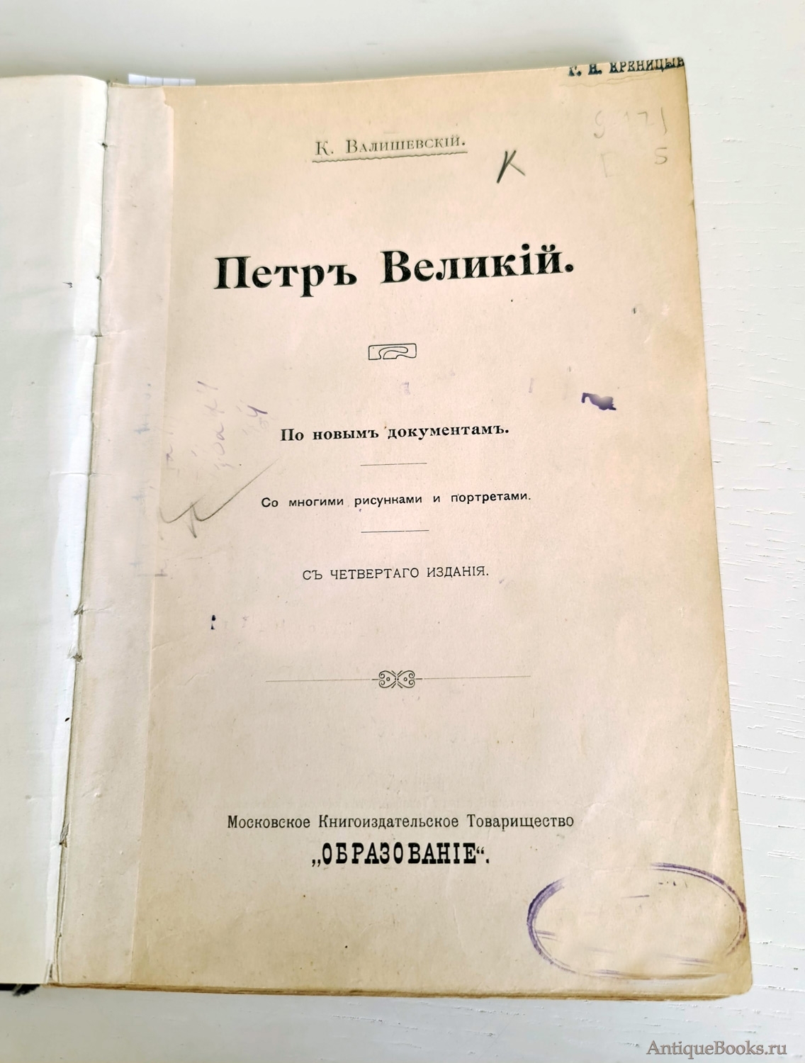 "Петр Великий" К.Валишевский Москва, Книгоиздательское Товарищество "Образование", 1908 г.