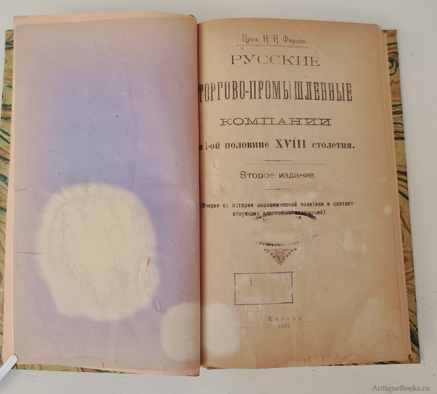 "Русские торгово-промышленные компании в 1-й половине XVIII столетии. (Очерки из истории торгово-промышленной политики и соответствующих общественных отношений)" Профессор Н.Н.Фирсов Казань: Типо-литография Императорского университета, 1922 г.