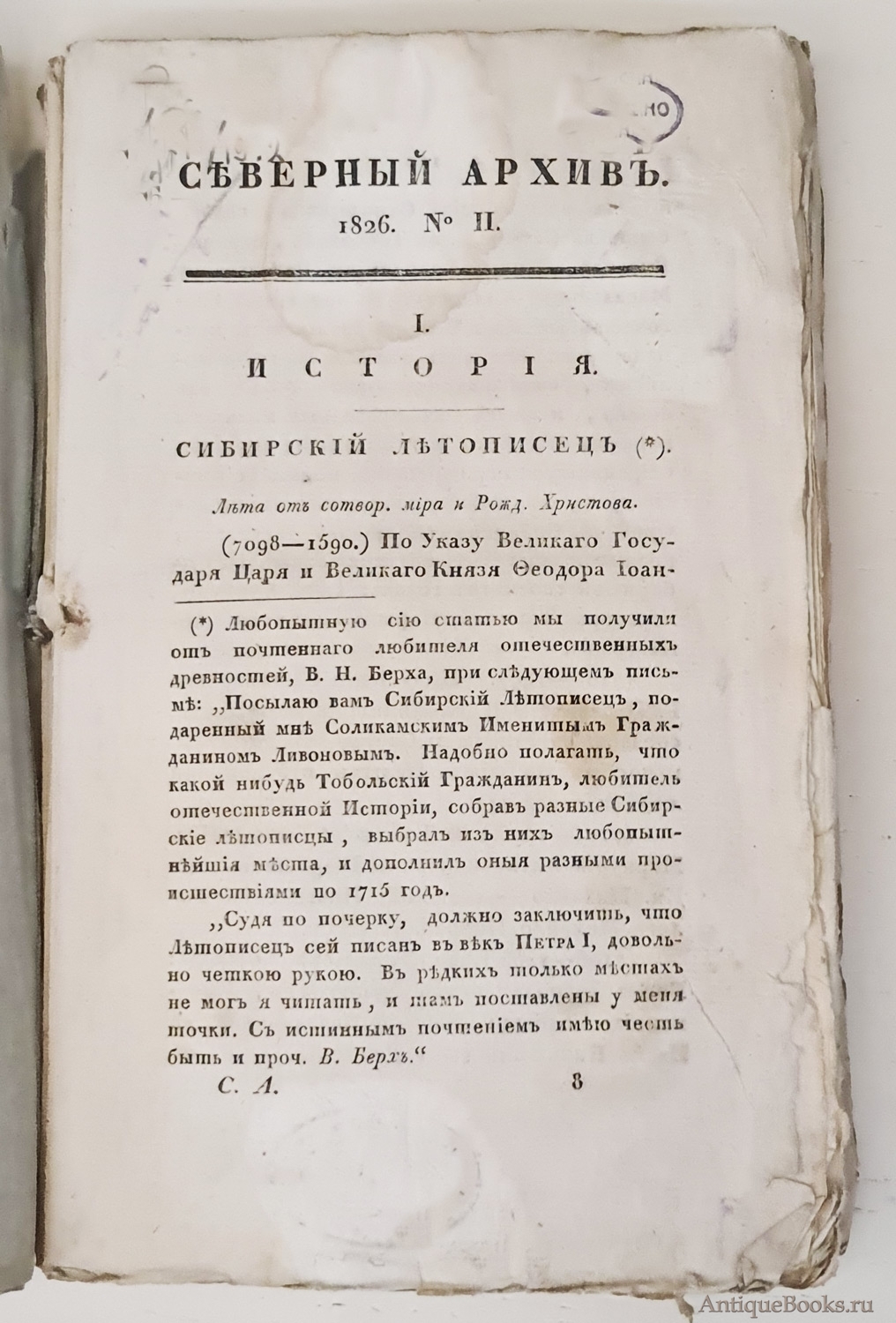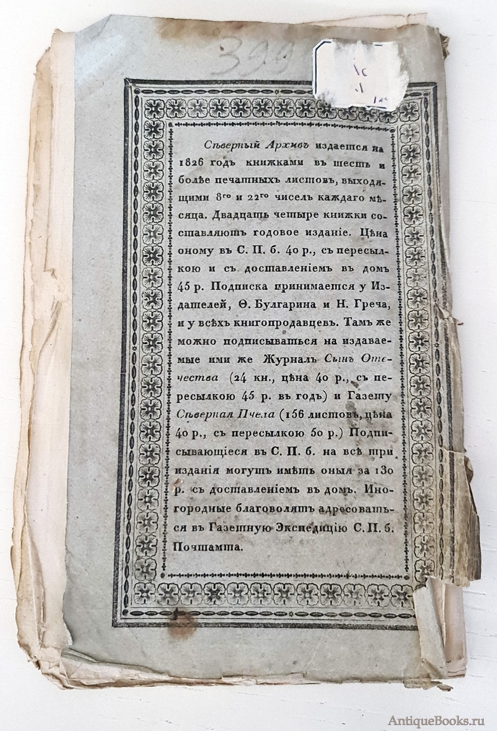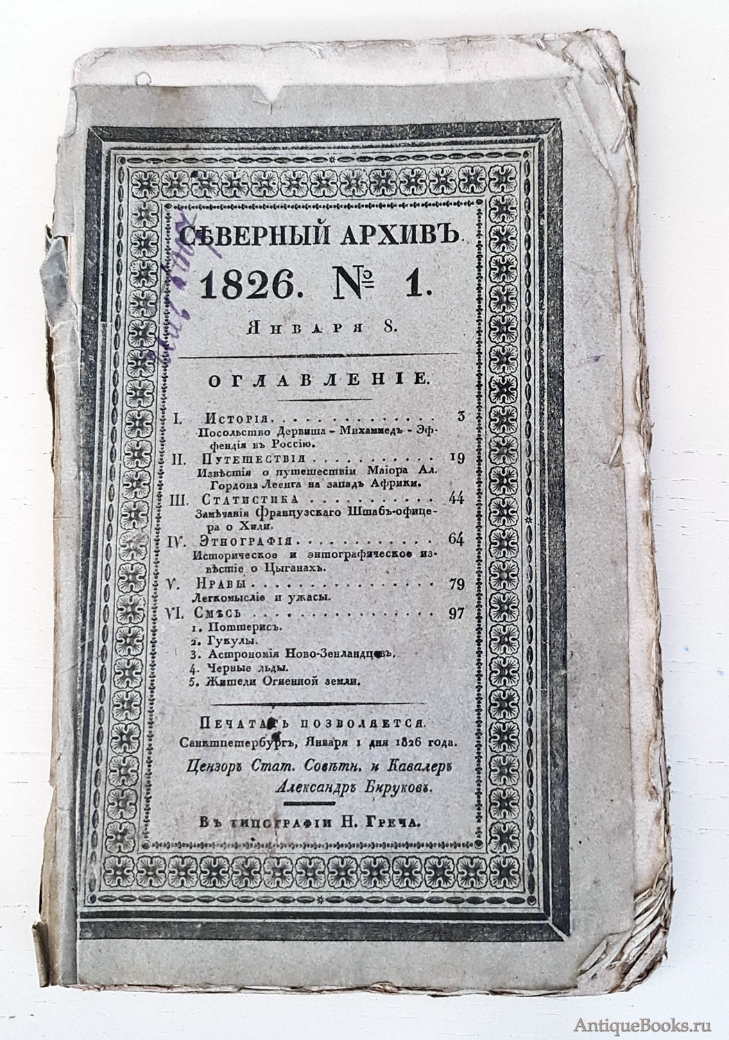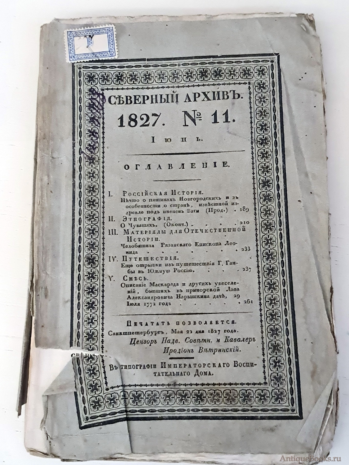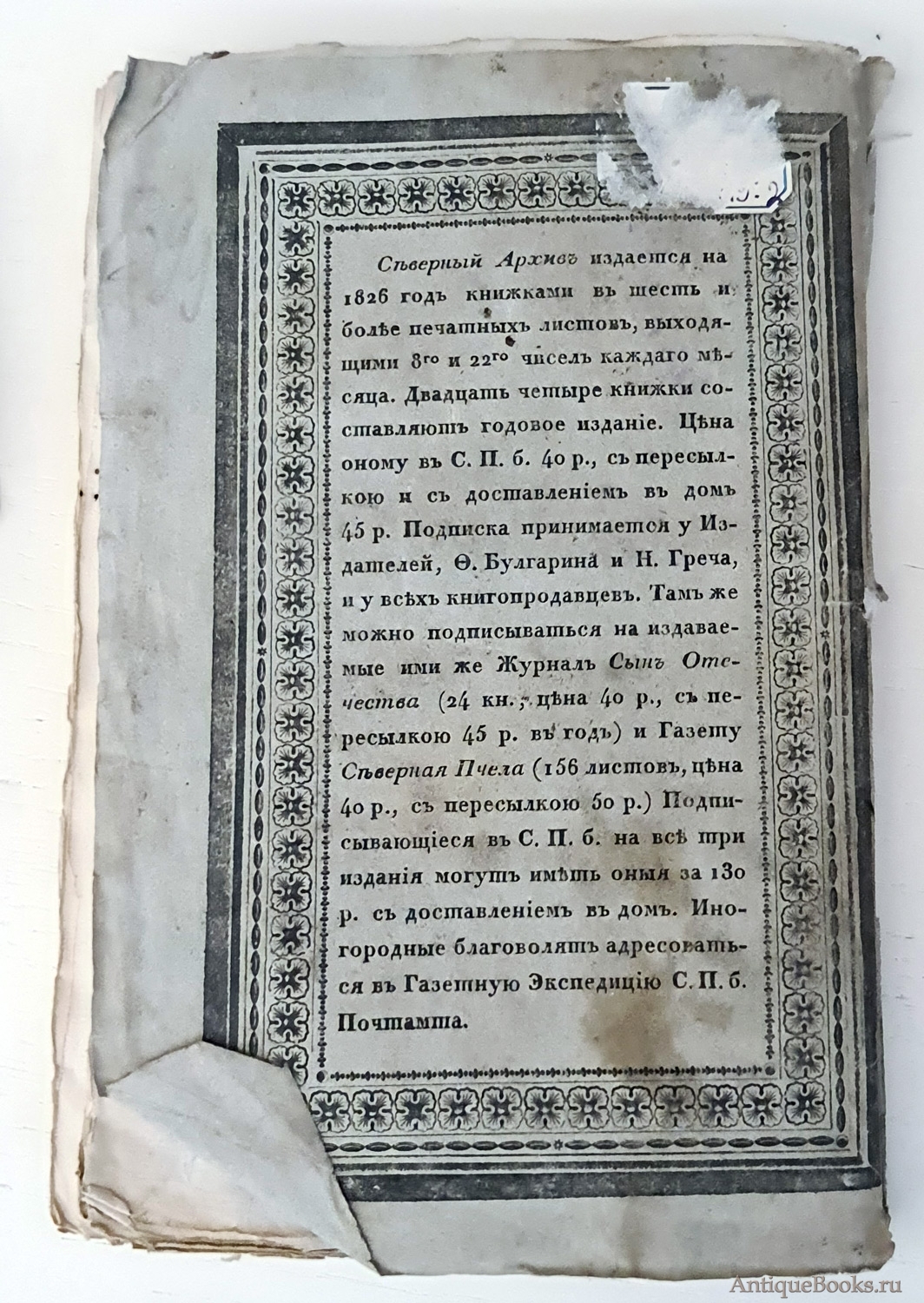 "Северный архив 1826 год. № 1, 2, 11, 13, 23 и 24" Санктпетербург, В Типографии Императорского Воспитательного Дома, 1826 г.