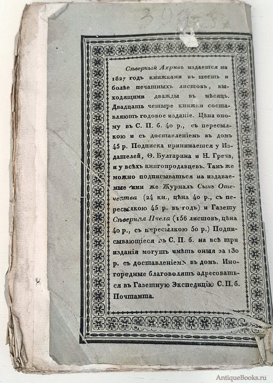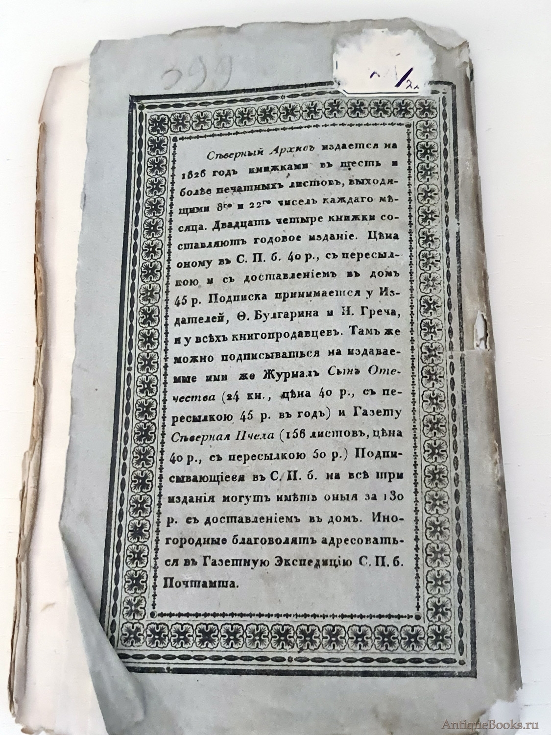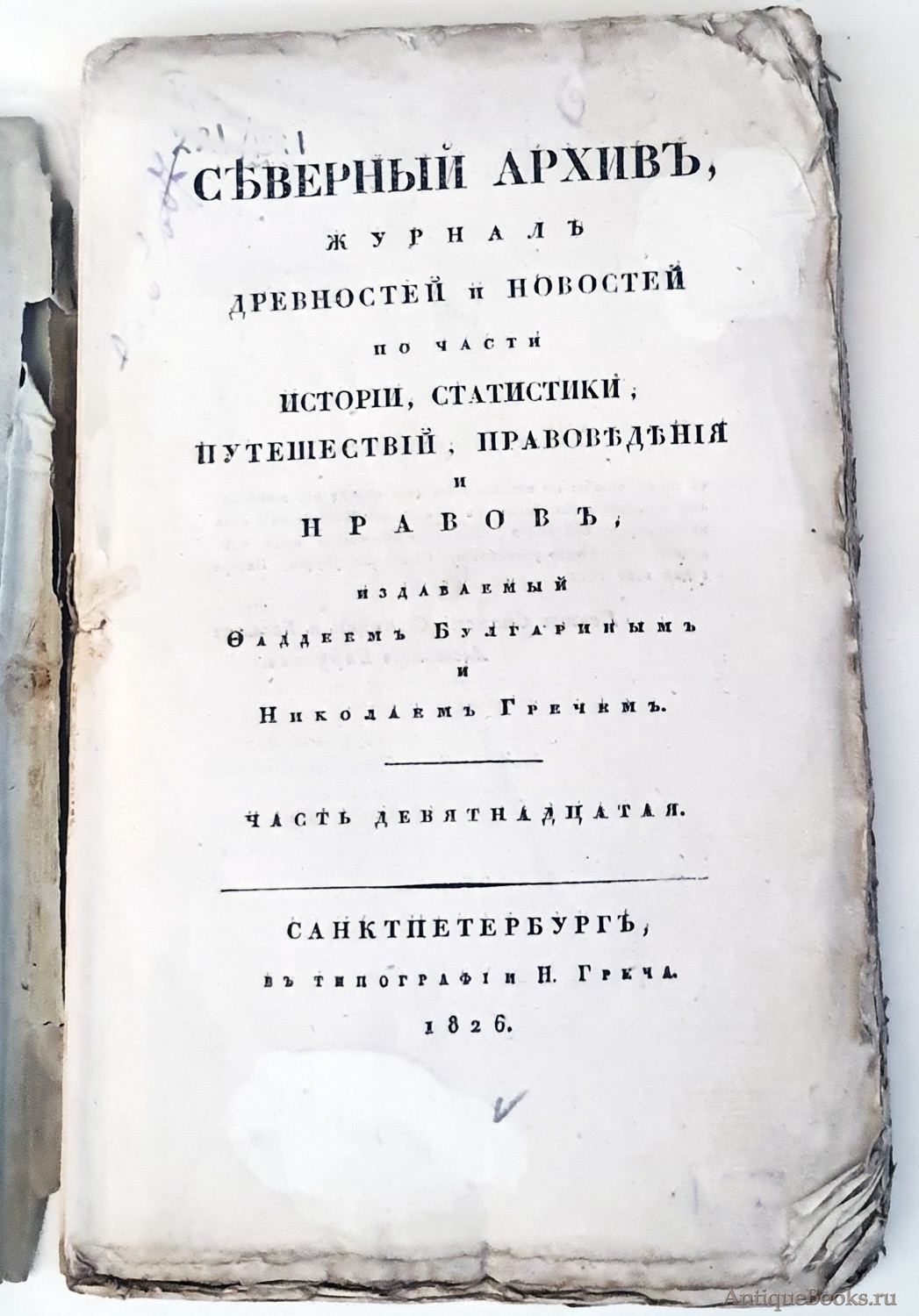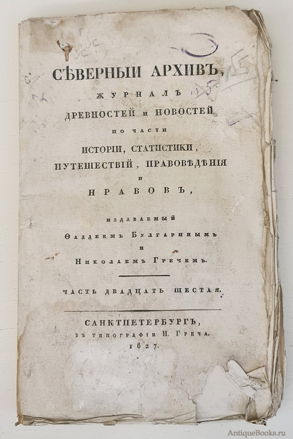 Журнал древностей и новостей по части истории, статистики, путешествий, правоведения и нравов, издаваемый Фаддеем Булгариным и Николаем Гречем".