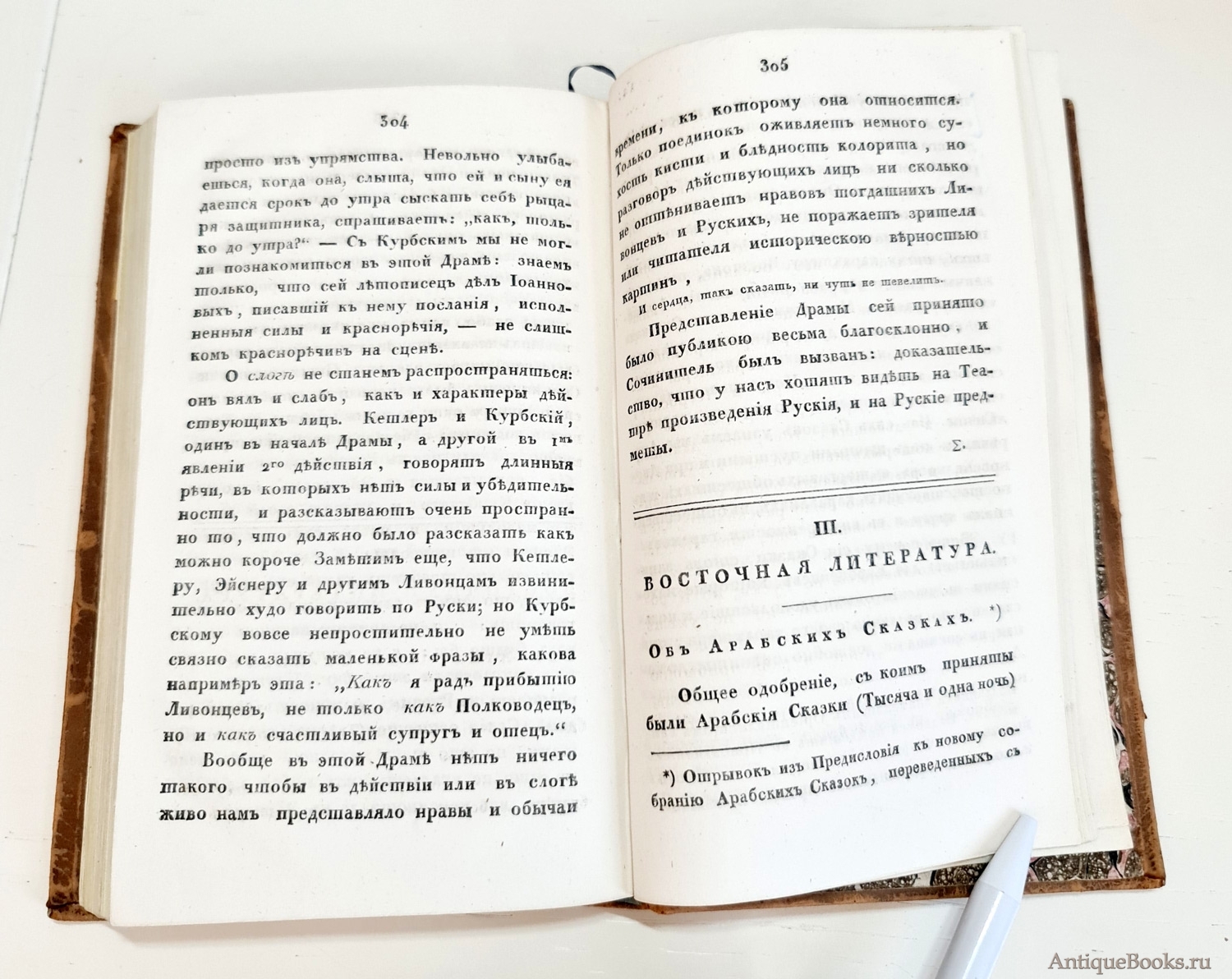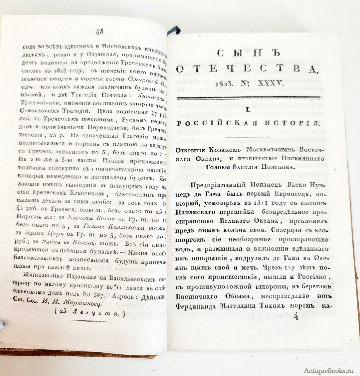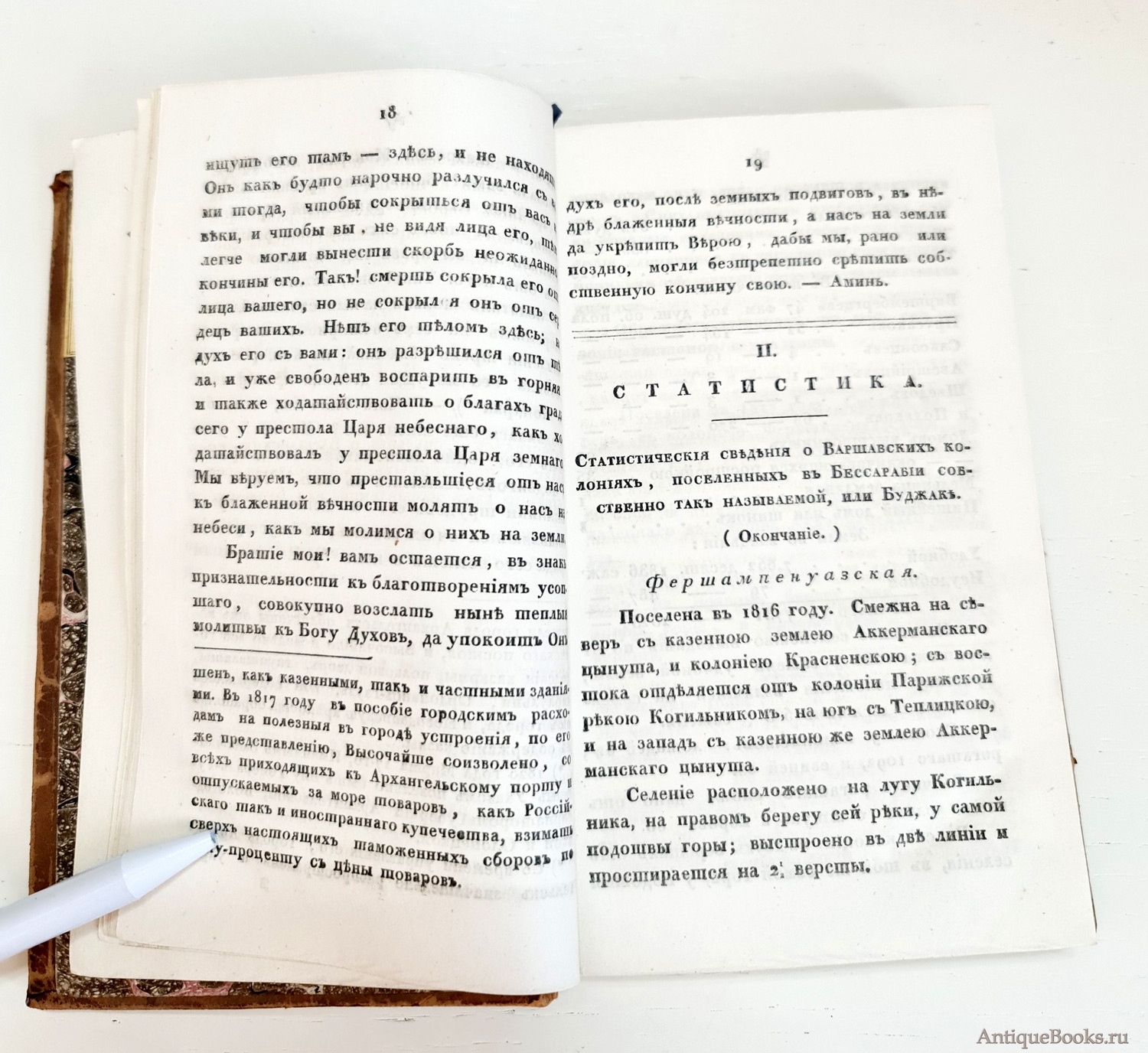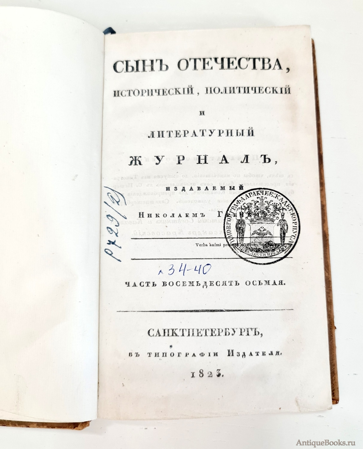 Экземпляр в цельнокожаном переплете с тиснением золотой рамочки по периметру. Из Аракчеевской библиотеке. С его знаменитым экслибрисом "Без лести предан". 338 стр. Формат 19х12,3х2,5 см. Состояние отличное. Исторический, политический и литературный журнал, издаваемый Гречем.