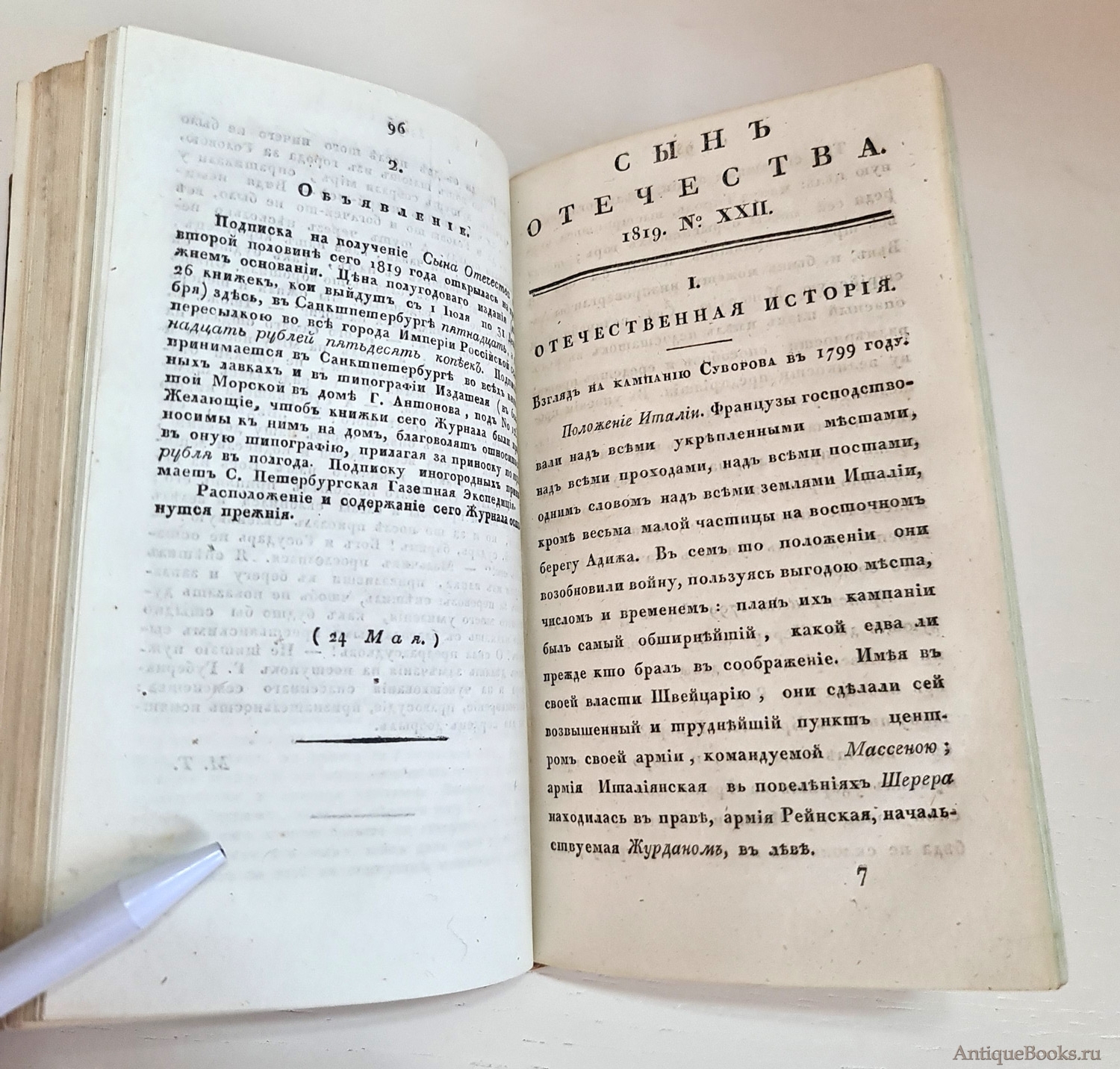 «Сын отечества» — один из старейших русских журналов, сыгравших важную роль в развитии общественной мысли начала XIX в. Был основан в 1812 г. Н.И. Гречем как исторический и политический орган, посвященный событиям Отечественной войны 1812 года. Выходил в Москве в 1812 — 1844, 1847 — 1852 гг. Изд.-ред. (в разное время) — Н.И. Греч, А.Ф. Воейков, Ф.В. Булгарин, О.И. Сенковский, А.Ф. Смирдин и др.