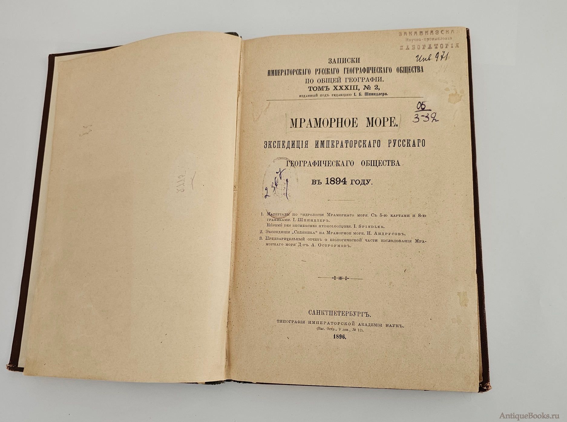 "Мраморное море. Экспедиция Императорского Русского Географического общества в 1894 году" Спб., Тип. Имп. Акад. Наук, 1896 г.