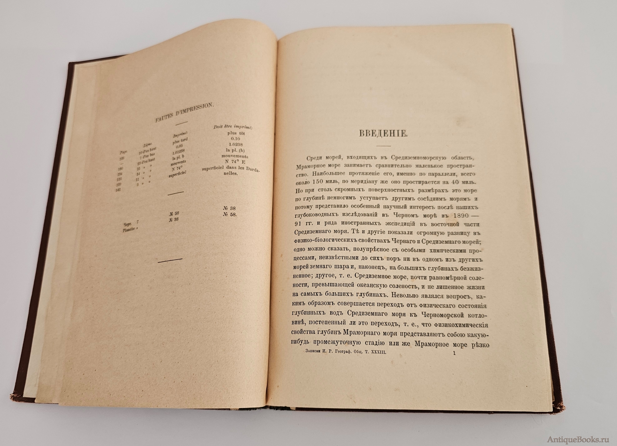 К книге прилагается карта рельефа дна Мраморного моря, а также карты солёности, температур и течений. Цена: 15 000 руб.