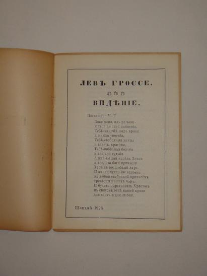 Представленный ниже экземпляр уже продан. Используйте поиск чтобы найти такую же или другую книгу Фотографии издания "Видение". Лев Гроссе. Шанхай, 1926 г.
