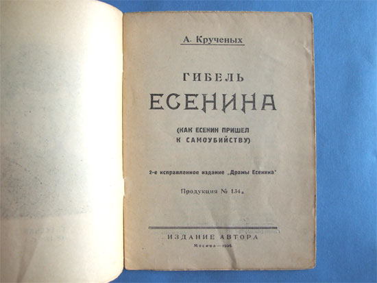 "Гибель Есенина. (Как Есенин пришел к самоубийству)", А. Крученых, Издание автора. Москва – 1926 г.